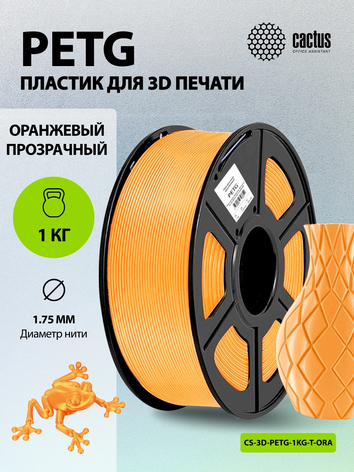 Пластик для принтера 3D Cactus CS-3D-PETG-1KG-T-ORANGE PETG d1.75мм 1кг L316м 1цв.
