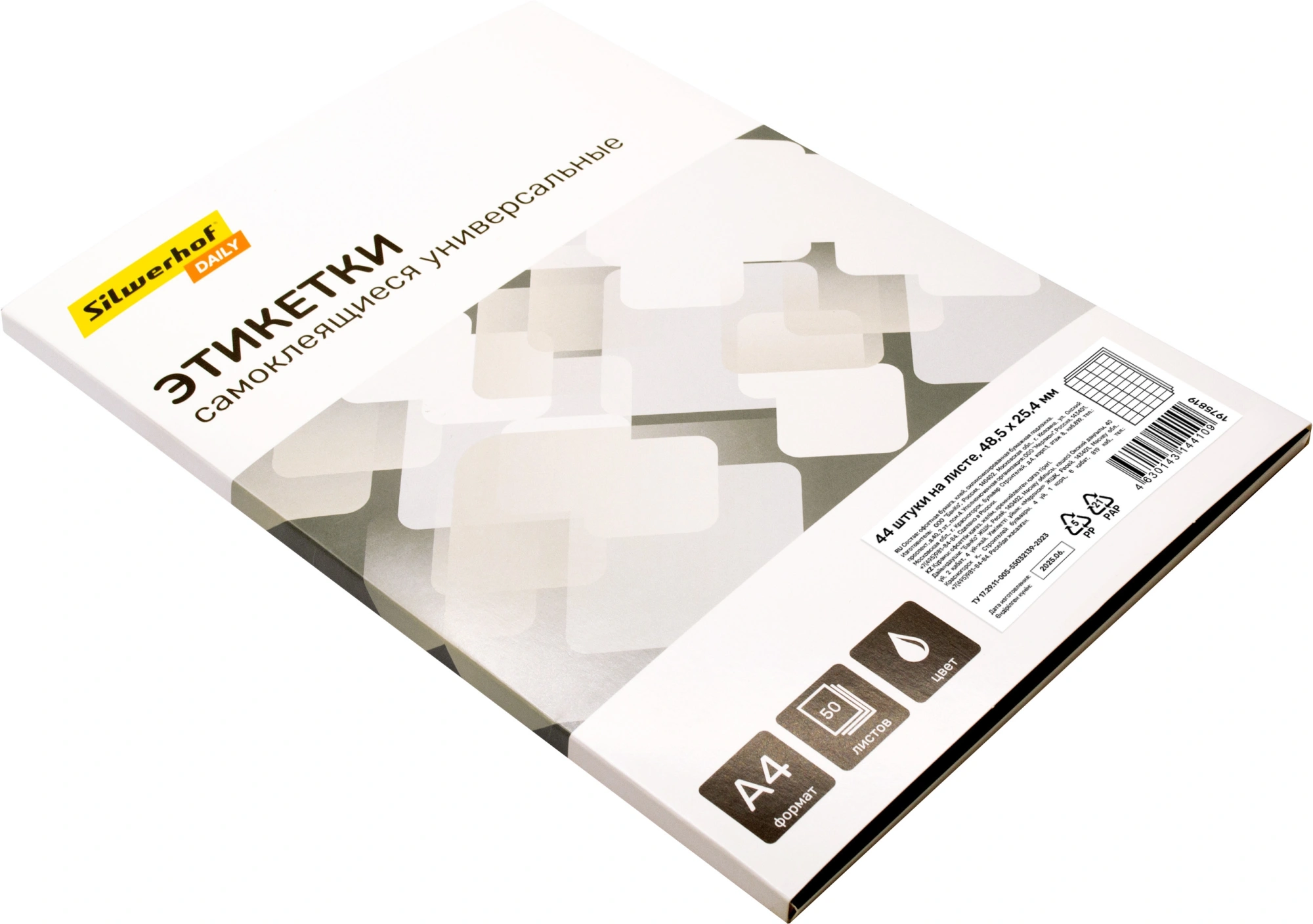 Этикетки Silwerhof A4 48.5x25.4мм 44шт на листе/50л./белый матовое самоклей. универсальная