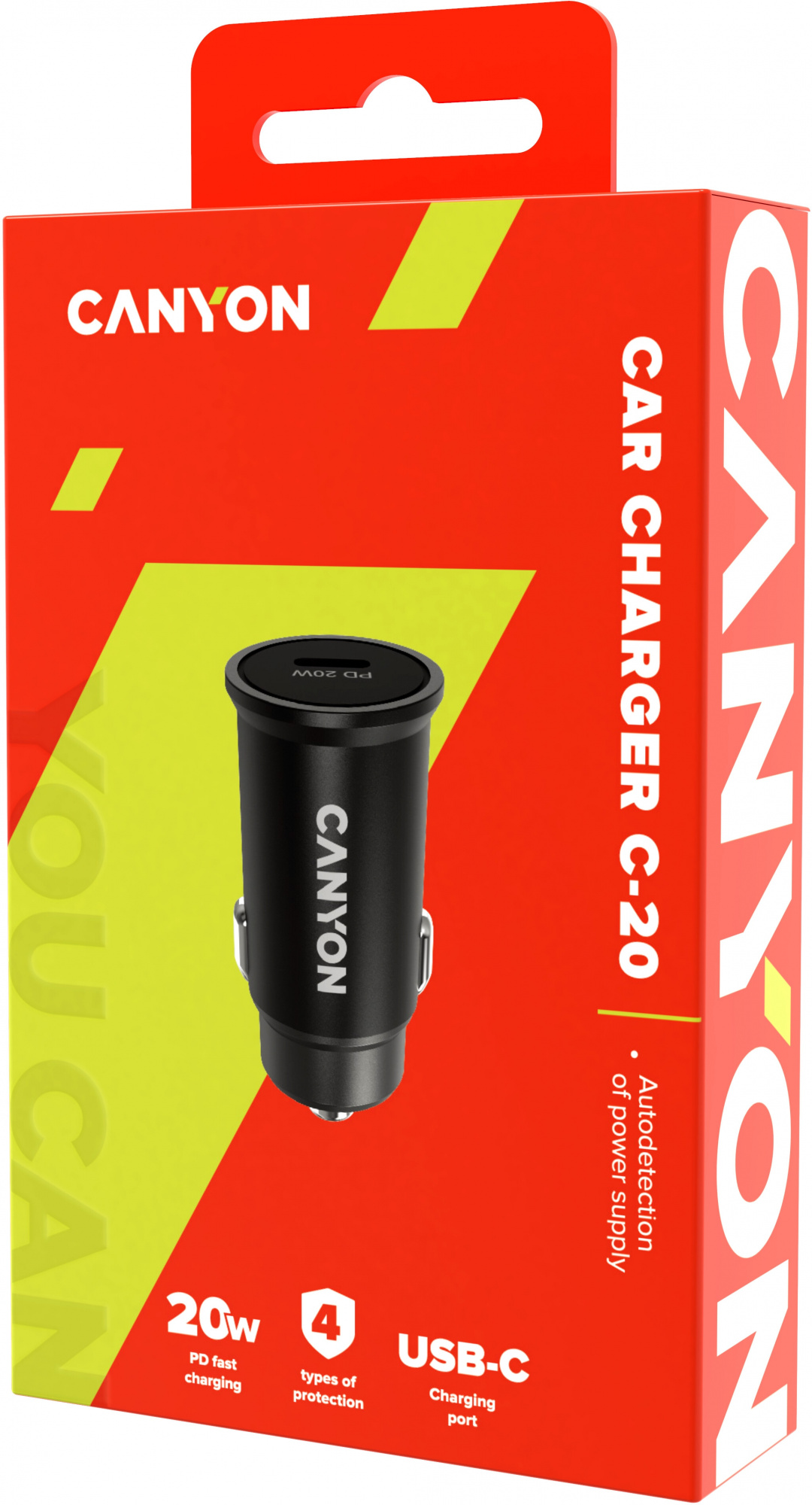 Автомобильное зар./устр. Canyon CNS-CCA20B 20W 3A (PD+QC) USB Type-C универсальное черный