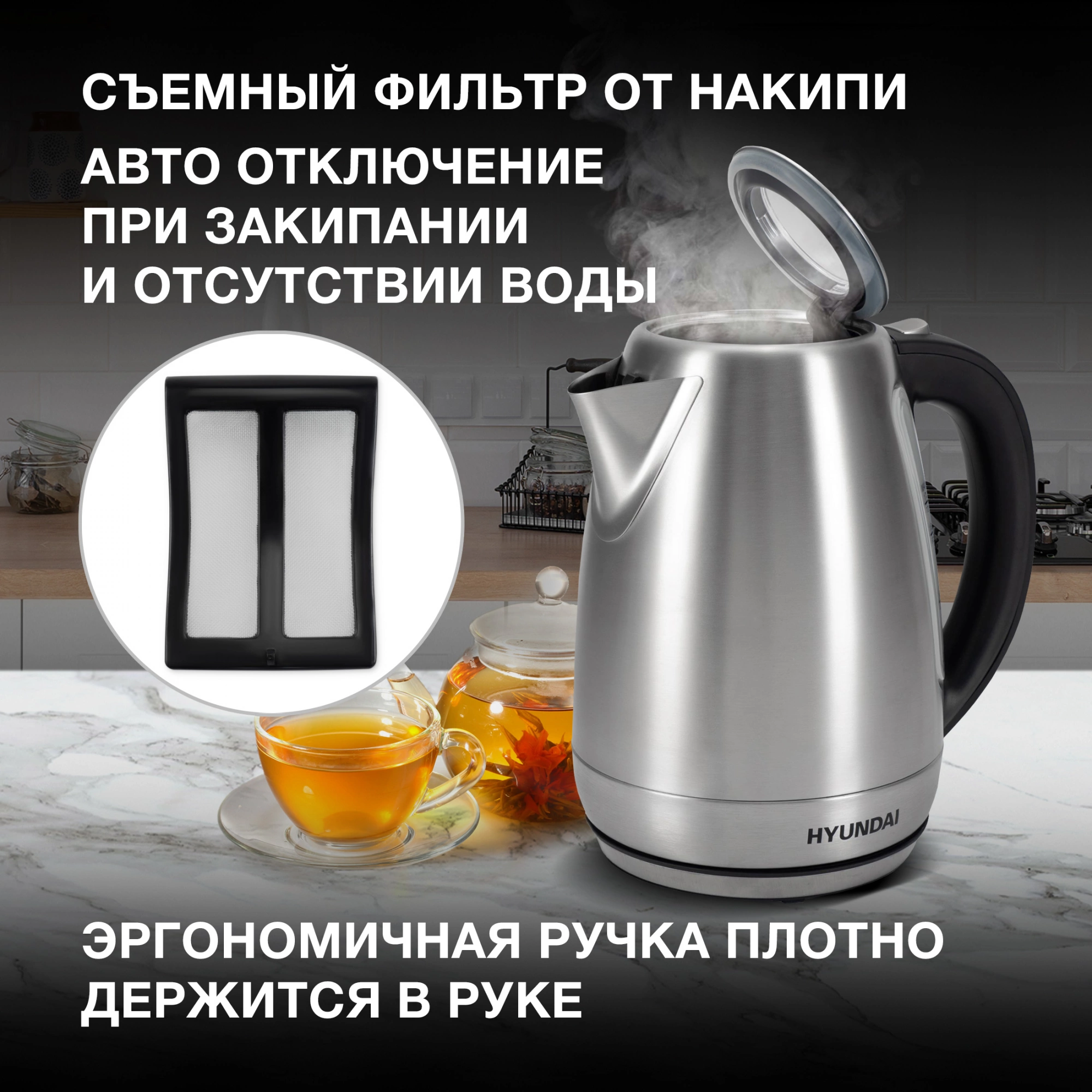 Чайник электрический Hyundai HYK-S8408 1.7л. 2200Вт серебристый матовый/черный корпус: металл
