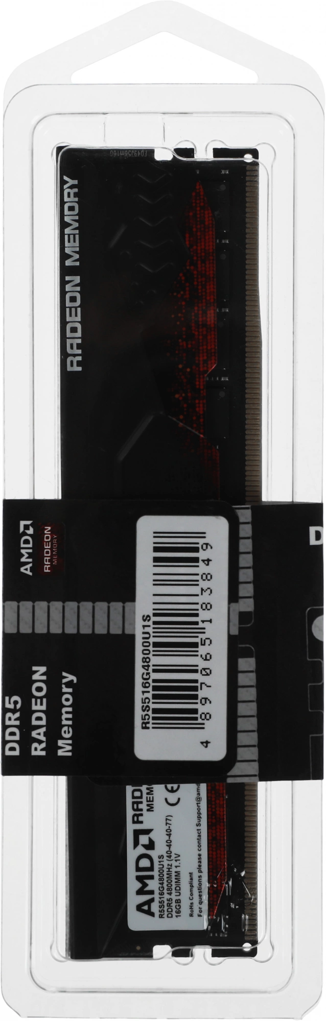 Память DDR5 16GB 4800MHz AMD R5S516G4800U1S Radeon R5 RTL PC4-38400 CL40 DIMM 288-pin 1.1В с радиатором Ret