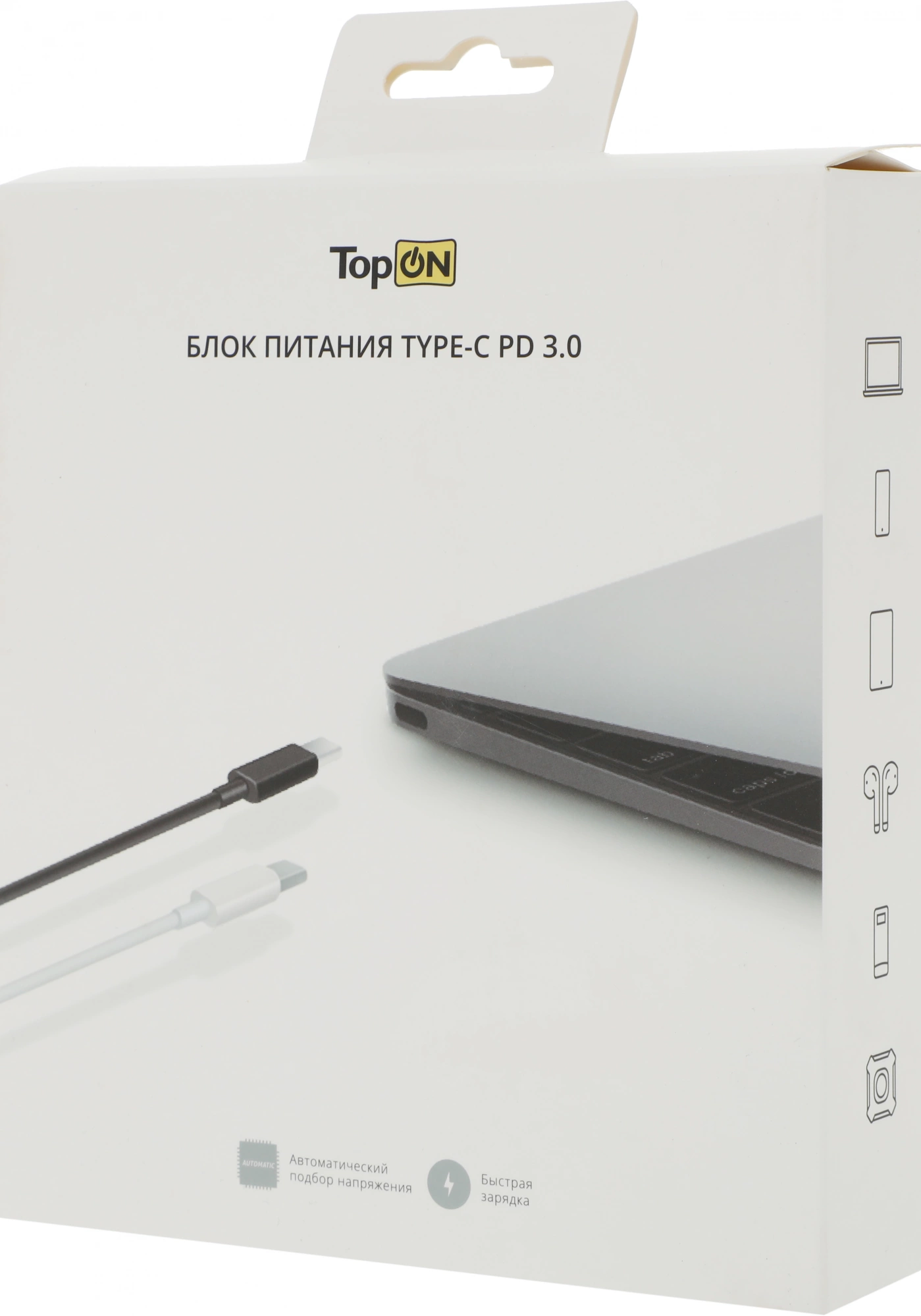 Блок питания TopON для ноутбука Dell TOP-DE100Q 100W c кабелем Type-C. Подходит для зарядки ноутбуков Dell и других устройств через универсальный порт USB-C. Исходящий ток 5V~3A, 9V~3A, 12V~3A, 15V~3A, 20V~5A. Поддержка Power Delivery, Quick Charge 3.0 и PPS. Прочный ABS пластик.