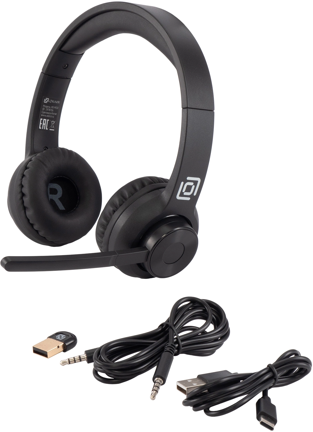 Наушники с микрофоном Оклик HS-M310 черный 1.5м накладные BT оголовье (1978706)