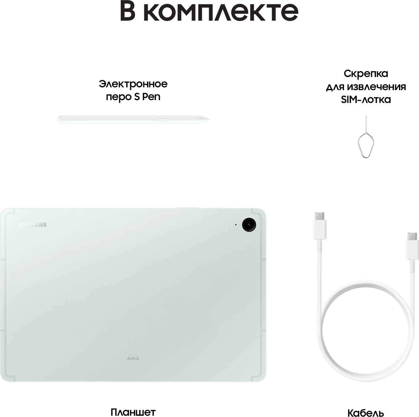 - Комплект поставкиПланшет, электронное перо S Pen, кабель Type-C (m) - Type-C (m), скрепка для извлечения SIM-лотка, документация