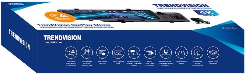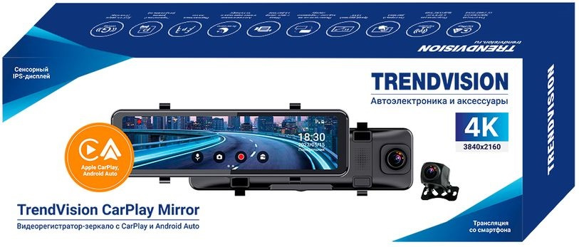 Видеорегистратор TrendVision CarPlay Mirror черный 2Mpix 2160x3840 2160p 150гр. MSTAR 8826
