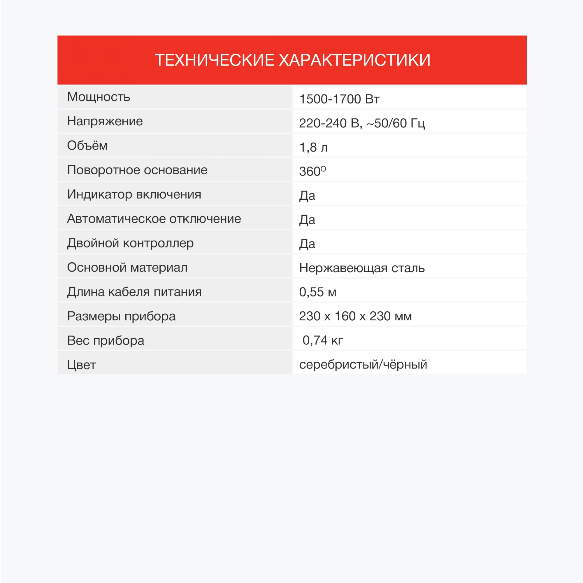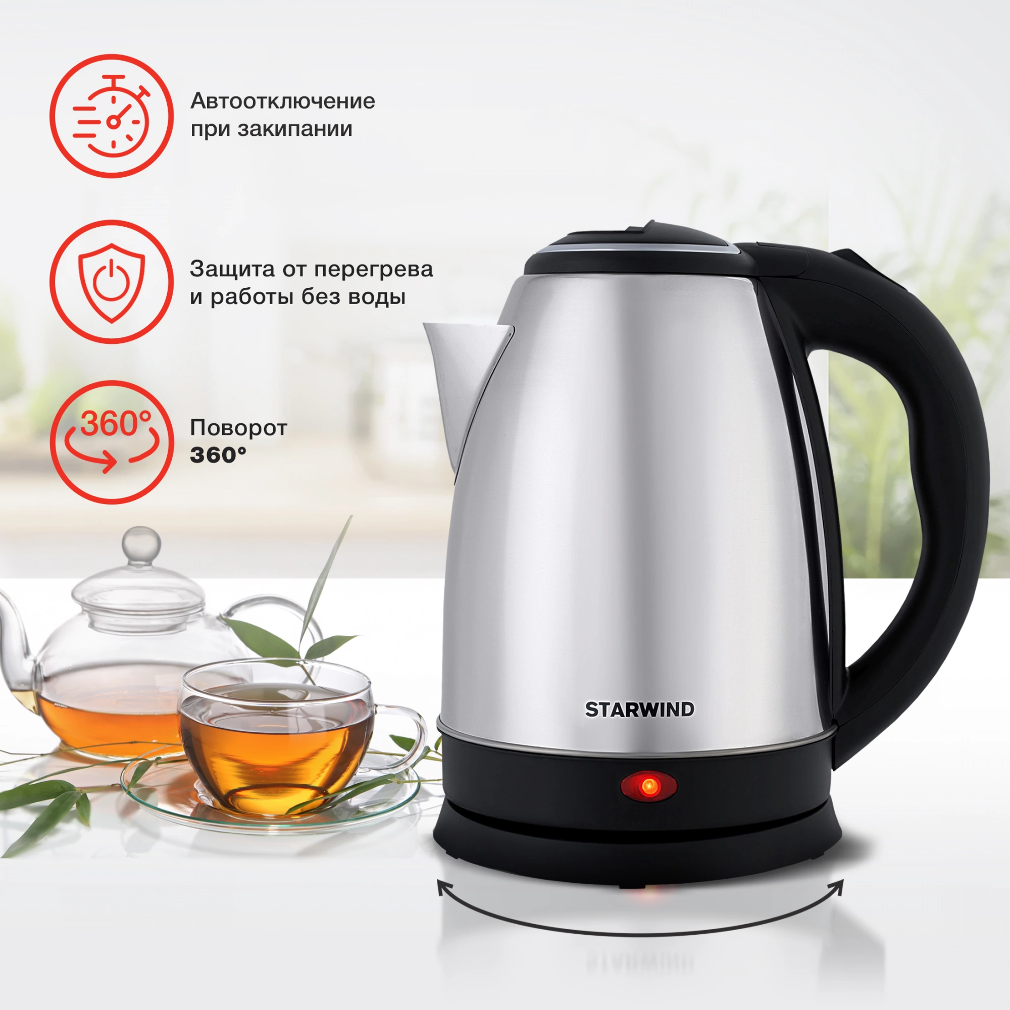Чайник электрический Starwind SKS1771 1.8л. 1700Вт серебристый/черный корпус: металл/пластик