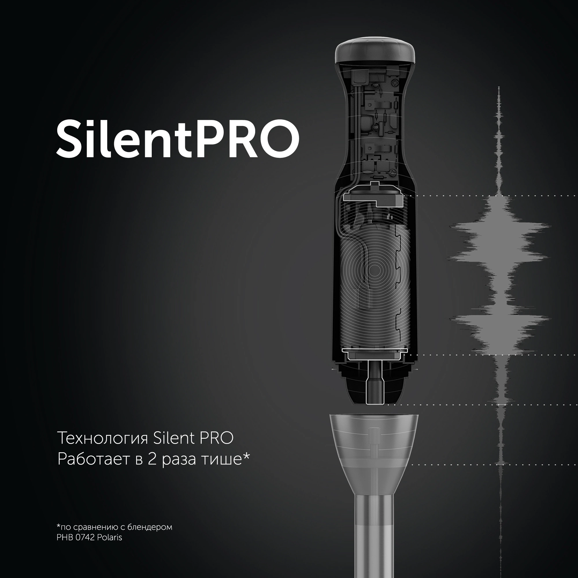 Блендер погружной Polaris PHB 1510GL Silent 1500Вт черный