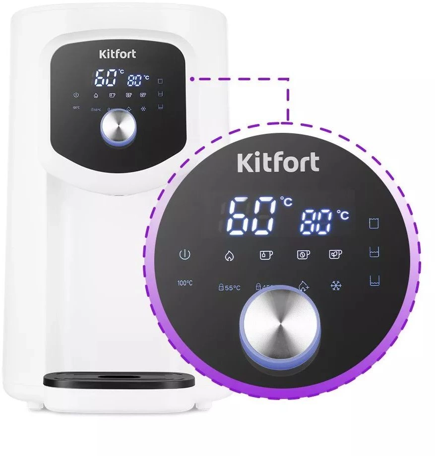 Термопот КТ-2518 предназначен для подачи и поддержания температуры воды от 40 до 95 °C. Вы можете выбрать один из 8 режимов работы для разных напитков. Встроенный термодатчик обеспечивает подогрев, охлаждение и кипячение воды в резервуаре.