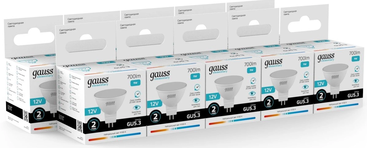 Лампа светодиодная Gauss Elementary 11529 9Вт цок.:GU5.3 софит 12B св.свеч.бел.нейт. (упак.:1шт)