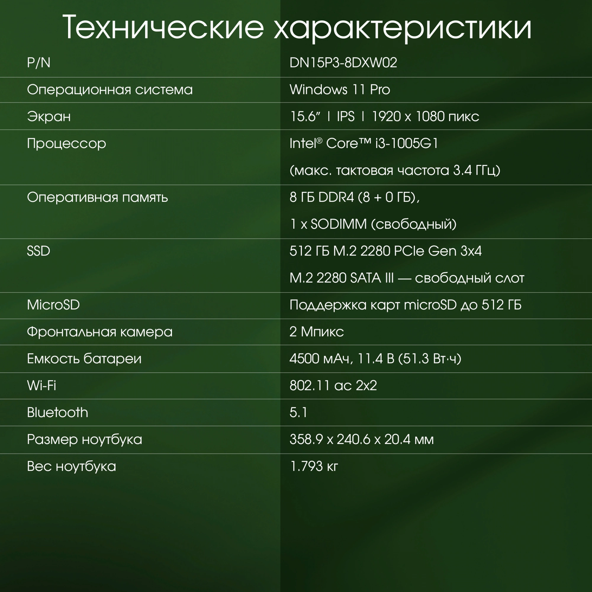 Ноутбук Digma Pro Breve S Core i3 1005G1 8Gb SSD512Gb Intel UHD Graphics 15.6" IPS FHD (1920x1080) Windows 11 Pro dk.grey WiFi BT Cam 4500mAh (DN15P3-8DXW02)