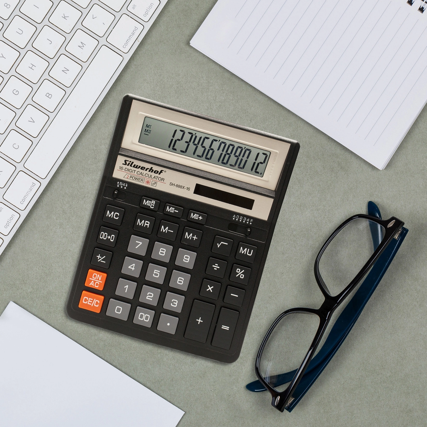 Калькулятор настольный Silwerhof SH-888X-16 черный 16-разр.