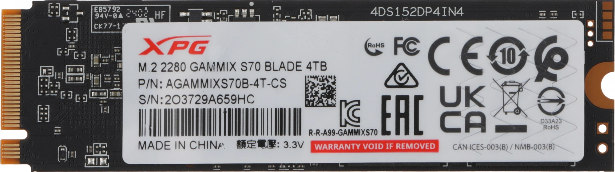 Накопитель SSD A-Data PCIe 4.0 x4 4TB AGAMMIXS70B-4T-CS XPG Gammix S70 Blade M.2 2280