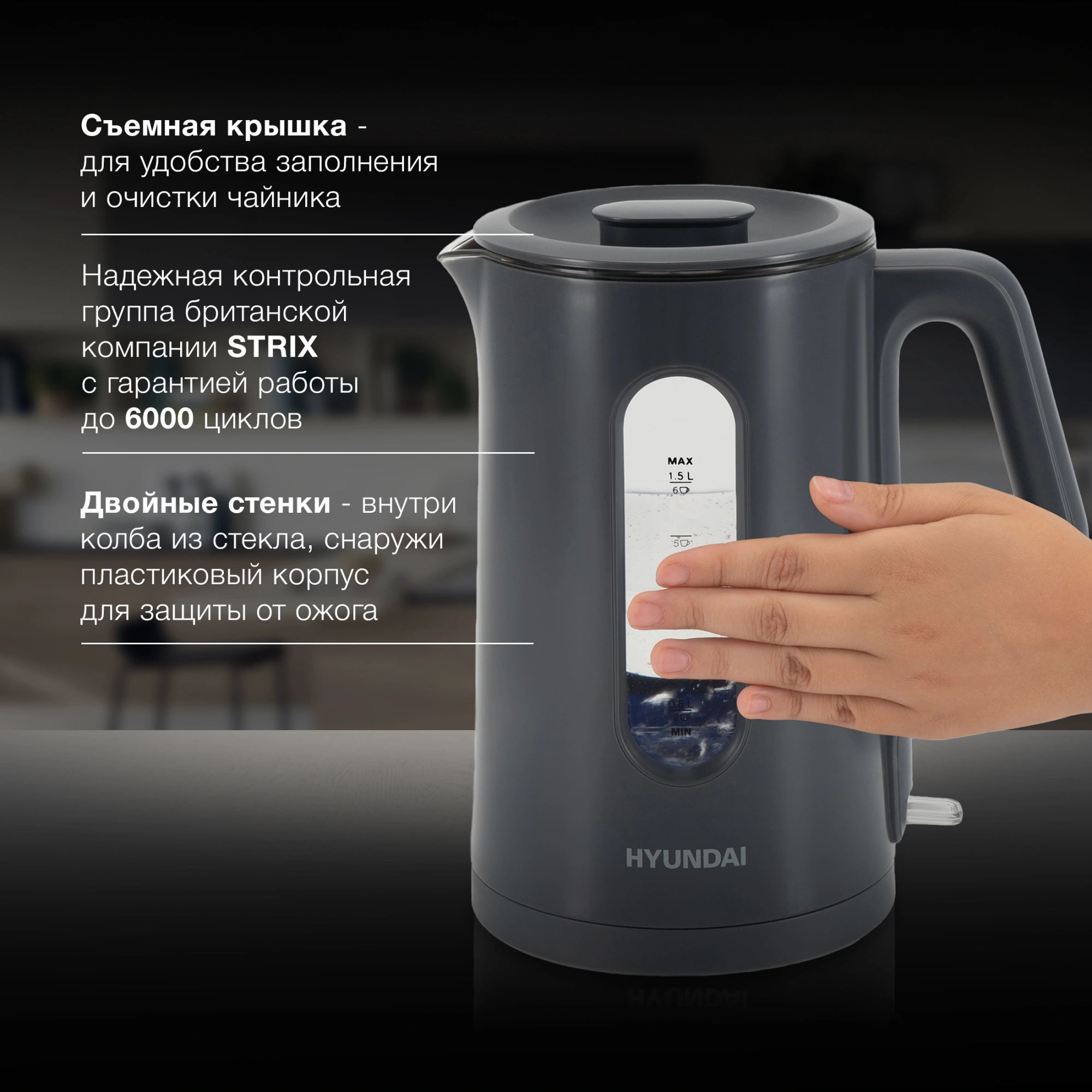 Чайник электрический Hyundai HYK-G4508 1.5л. 1700Вт серый/прозрачный корпус: стекло