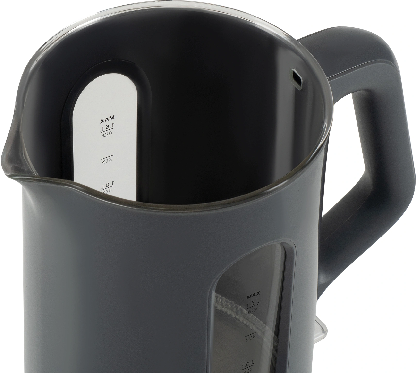 Стильный чайник в трендовом графитовом цвете. Качественная сборка, эргономичная форма, хромированные элементы, делают из чайники стильный и полезный аксессуар на кухне.