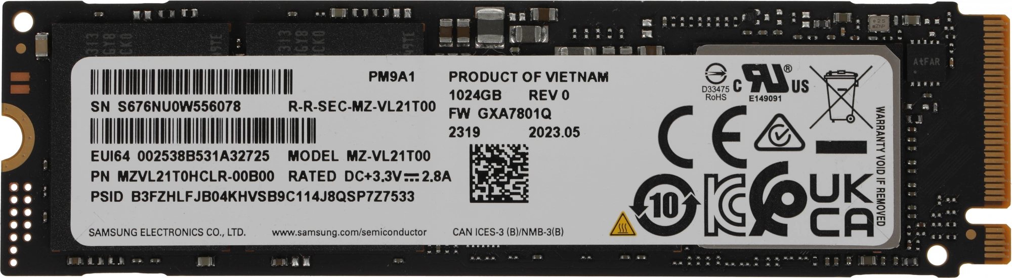 Накопитель SSD Samsung PCIe 4.0 x4 1TB MZVL21T0HCLR-00B00 PM9A1 M.2 2280 OEM