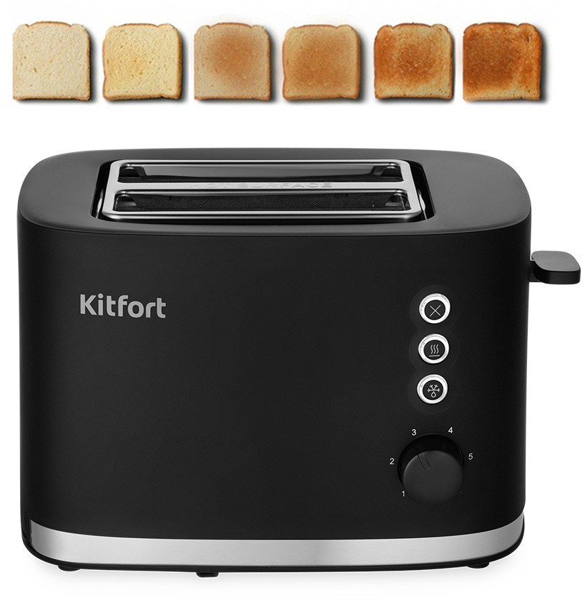 Электрический тостер Kitfort КТ-6217 создан для тех, кто любит полакомиться ароматным и хрустящим поджаренным хлебом. Особый вкус и цвет корочки тостов получаются благодаря карамелизации сахара, содержащегося в муке, при нагреве в процессе приготовления.