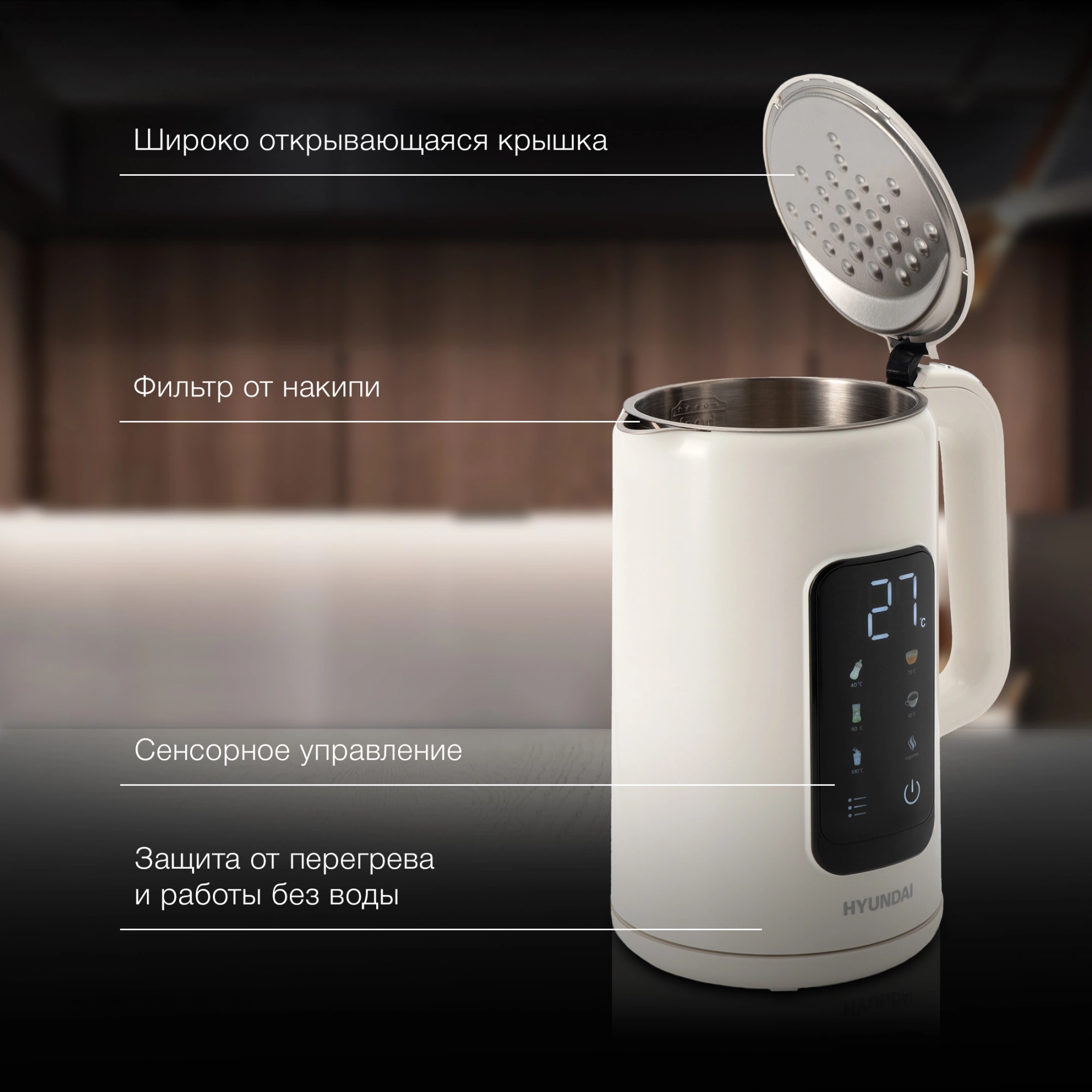 Чайник электрический Hyundai HYK-S4606 1.7л. 2200Вт кремовый корпус: металл