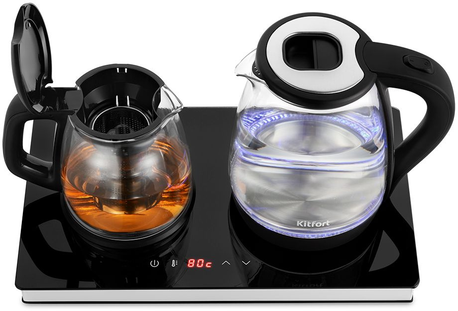 Чайный набор Kitfort КТ-6181 2л. 1500Вт черный/нержавеющая сталь корпус: стекло/пластик