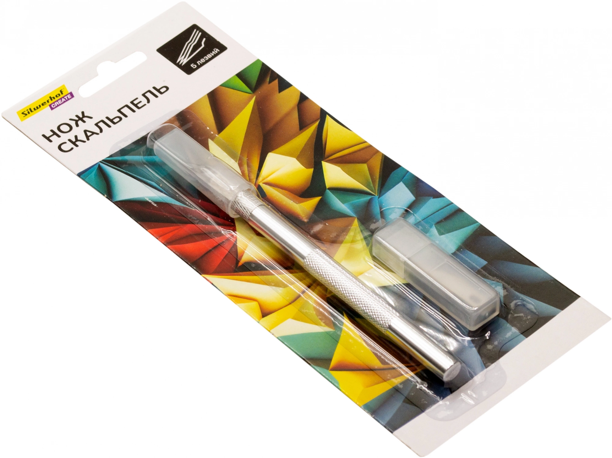 Резак-скальпель Silwerhof Create 5 сменных лезвий металл