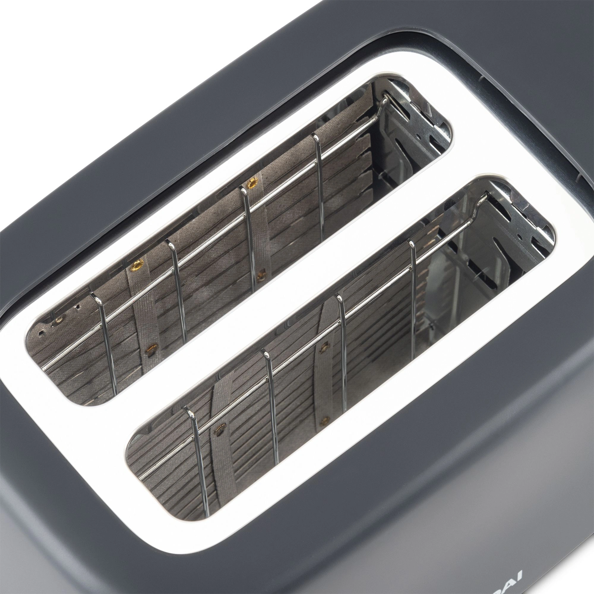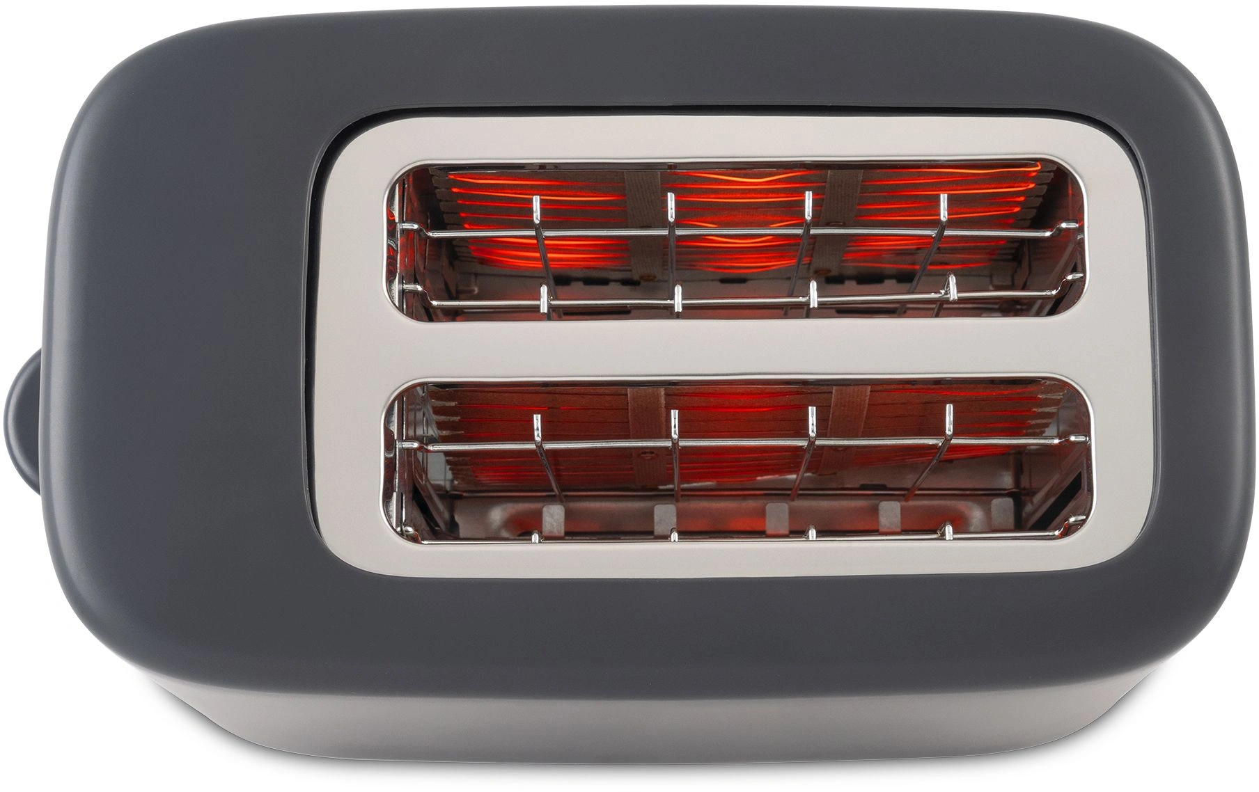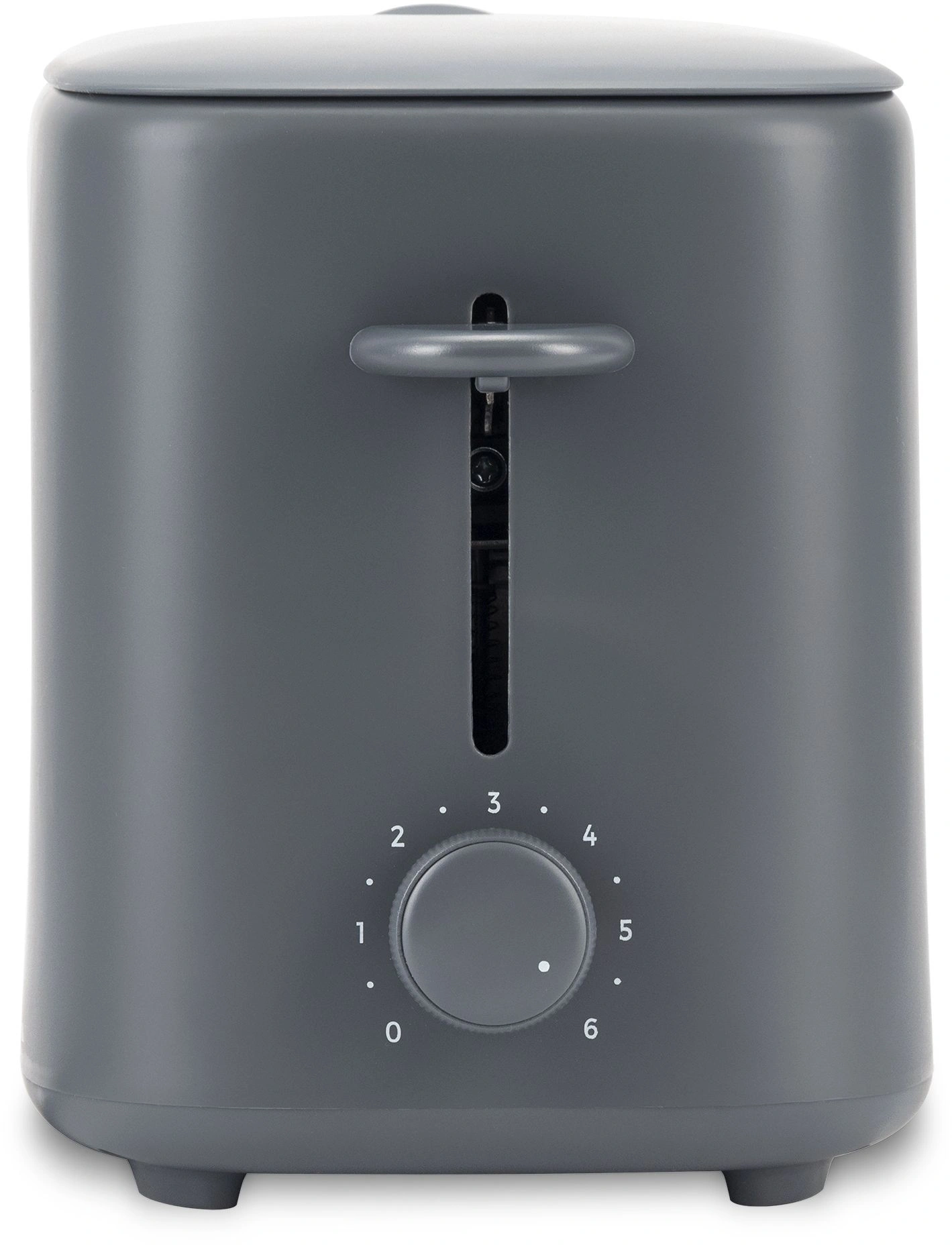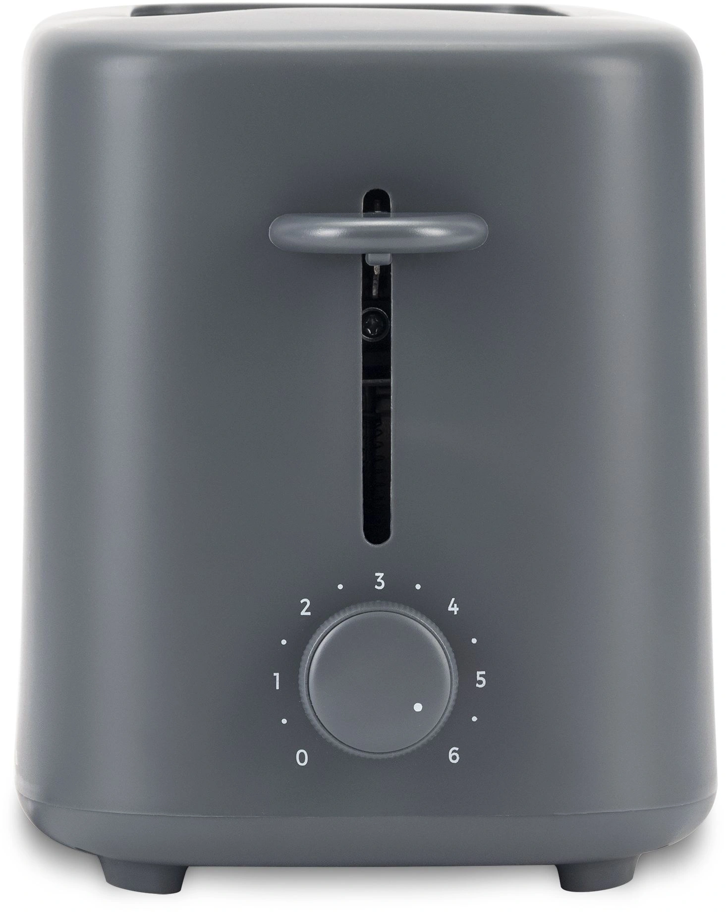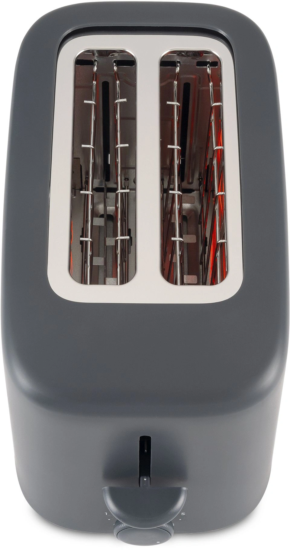 Компактный тостер со стандартными слотами для двух тостов, торцевое управление, трендовый серый цвет. Только тостер, все что нужно.