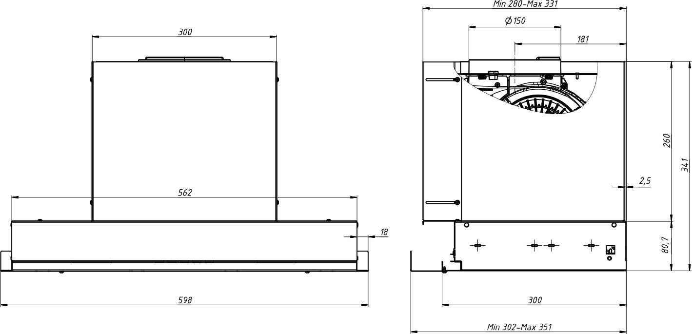 - Высота вытяжки34.1