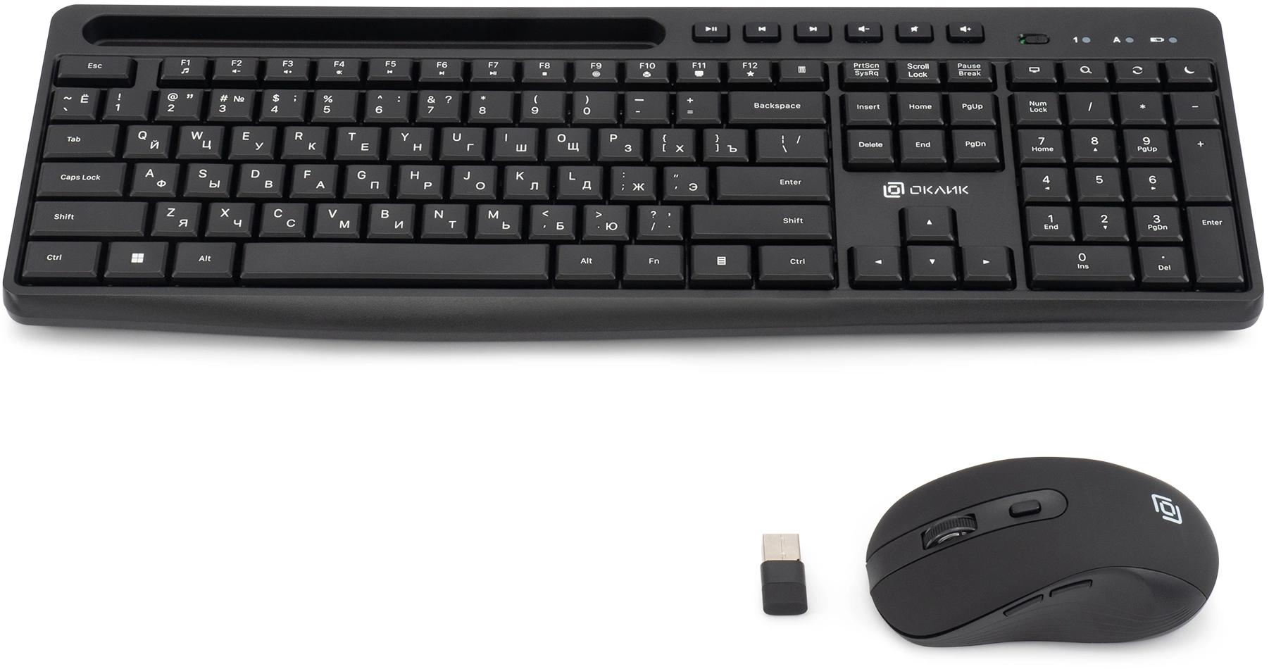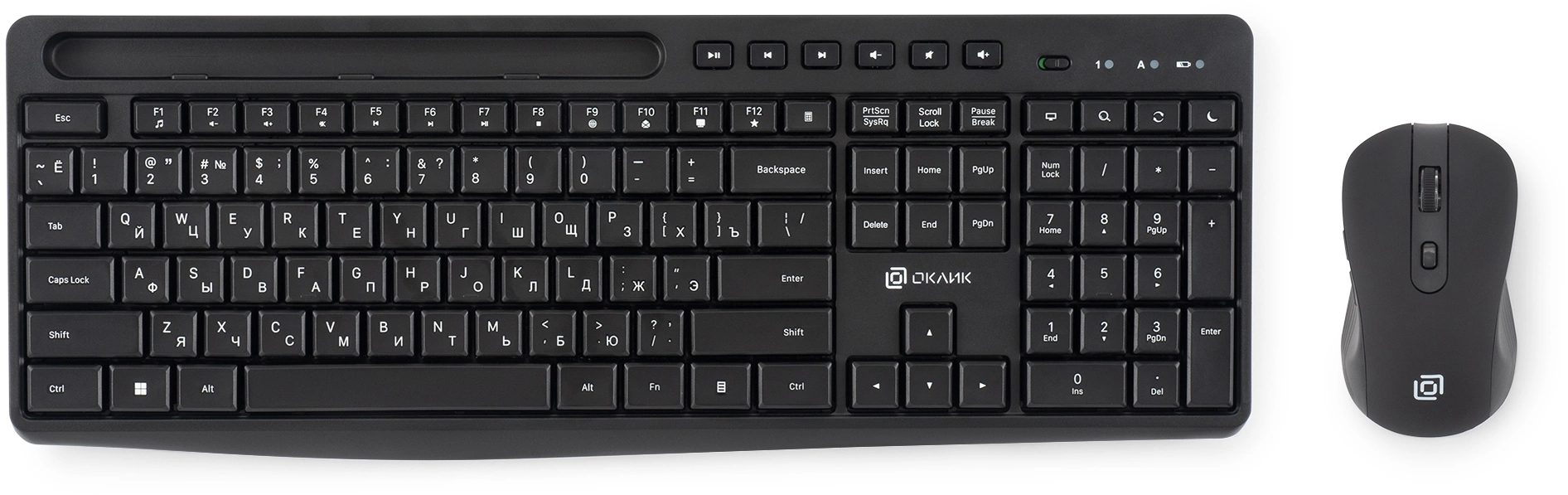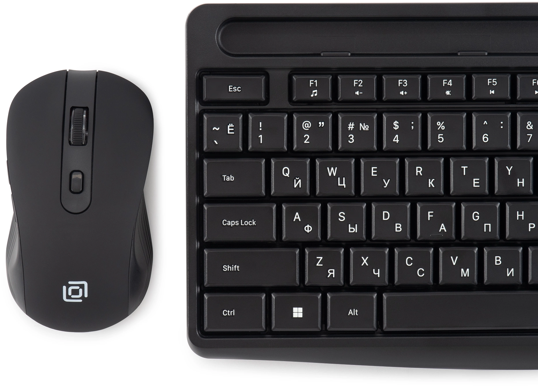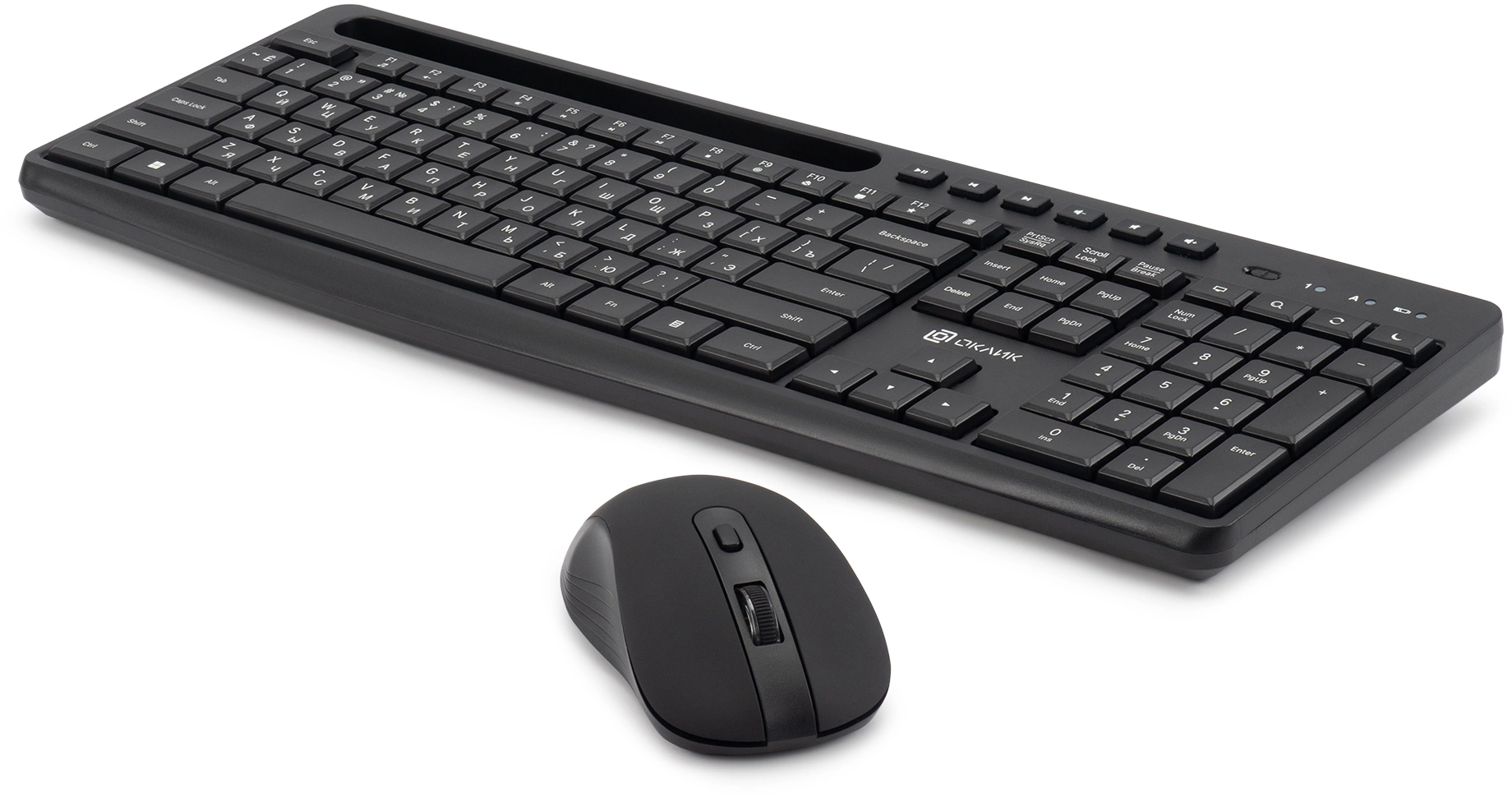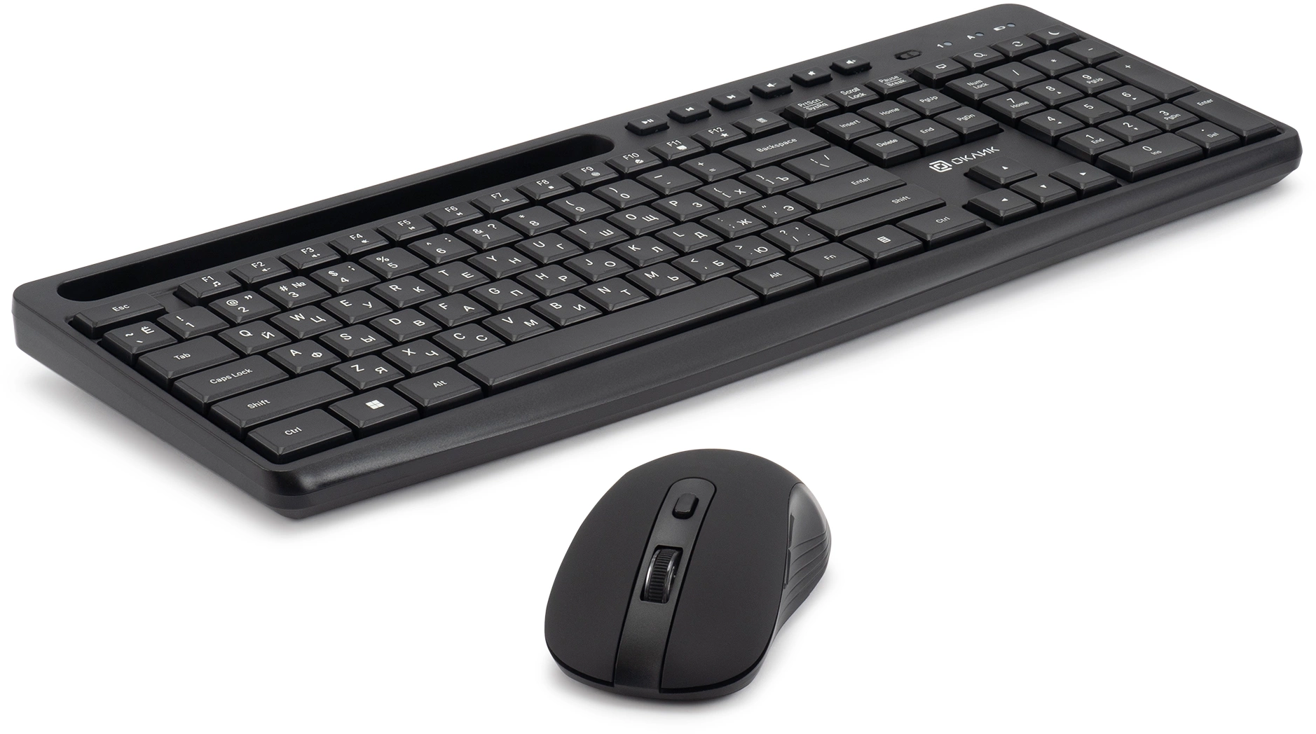 - Особенности комплектаБесшумный офисный комплект с дополнительными клавишами клавиатуры и беспроводным подключением. Размер холдера для размещения мобильных устройств: 21,5 см x 1,5 см.