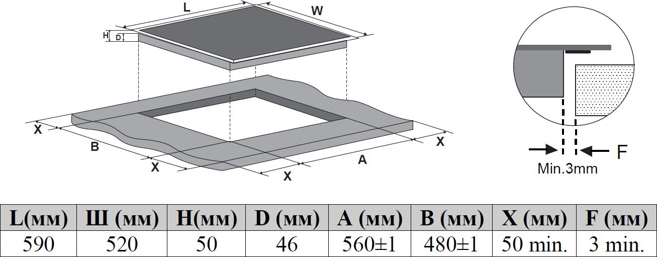 - Размеры для встраивания560x480мм