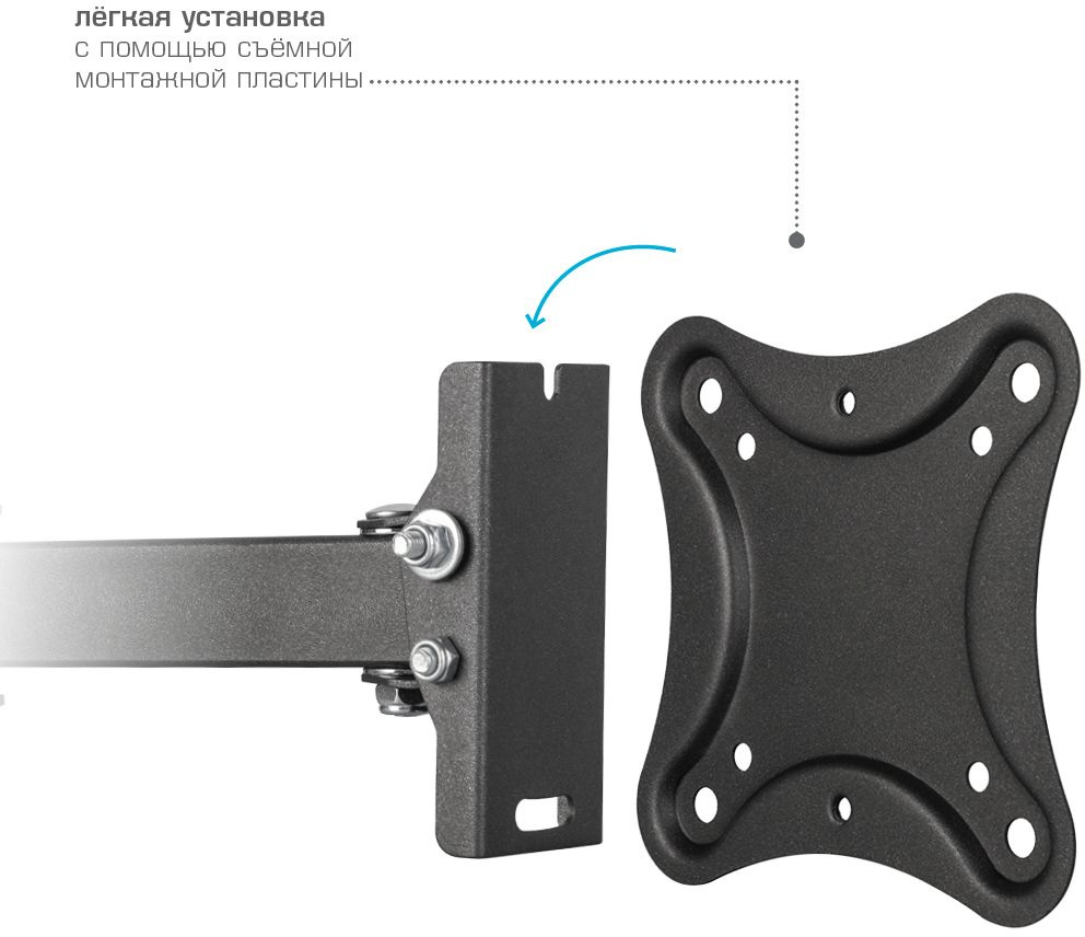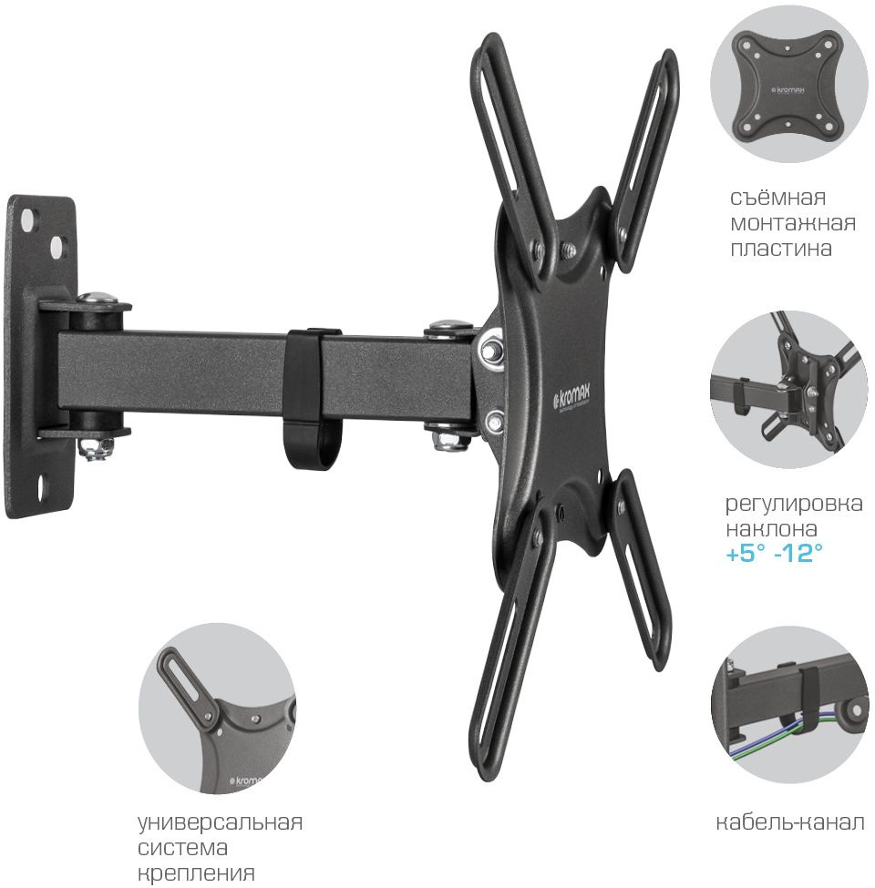 Кронштейн для телевизора Kromax CORBEL-4 черный 15"-42" макс.25кг настенный поворот и наклон