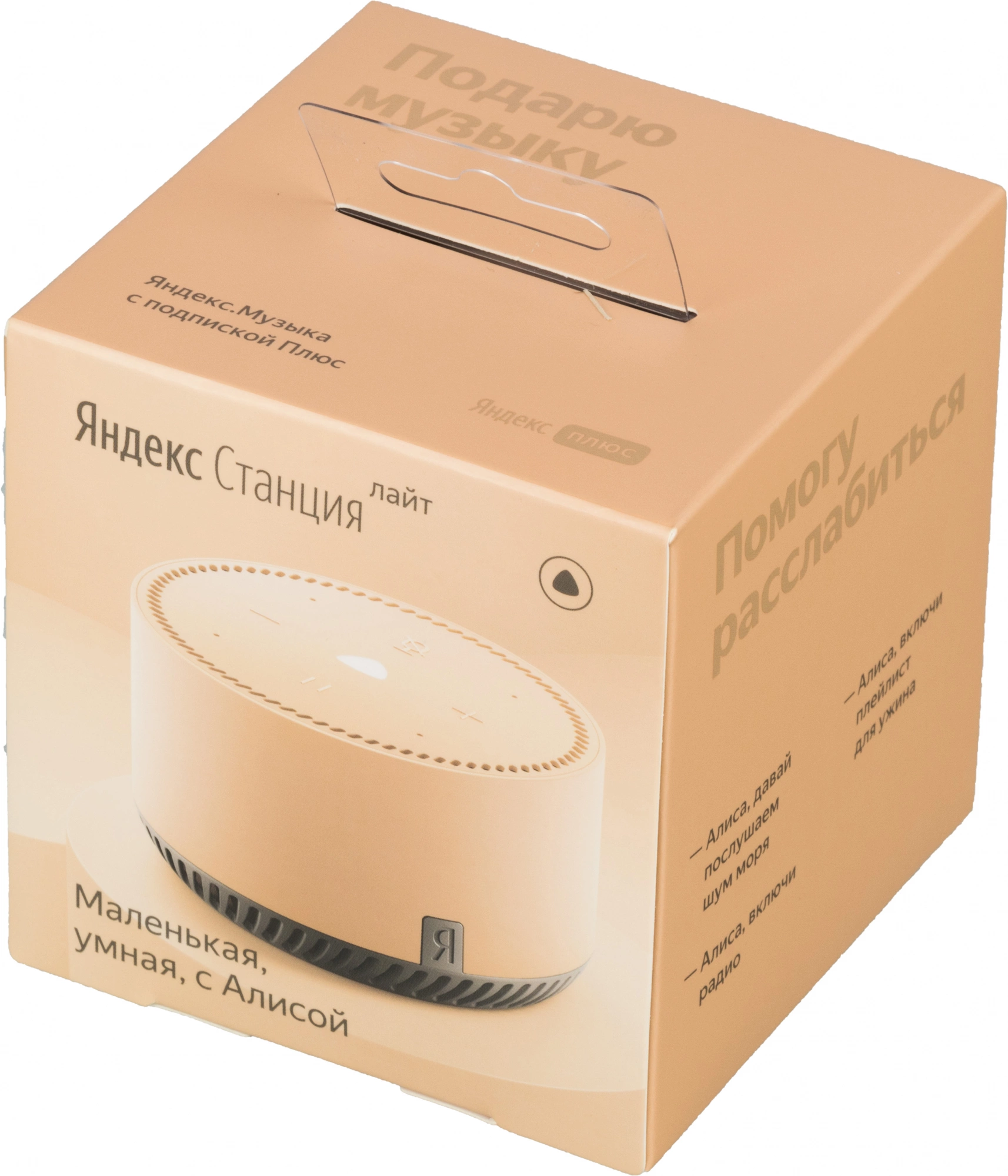 Умная колонка, которая управляется голосом и жестами. Внутри-голосовой помощник Алиса: она включает музыку, отвечает на вопросы и выполняет поручения. Также станция Мини помогает управлять лампами, увлажнителями и другими устройствами, которые работает с Алисой, и создавать музыку движениями ладони.