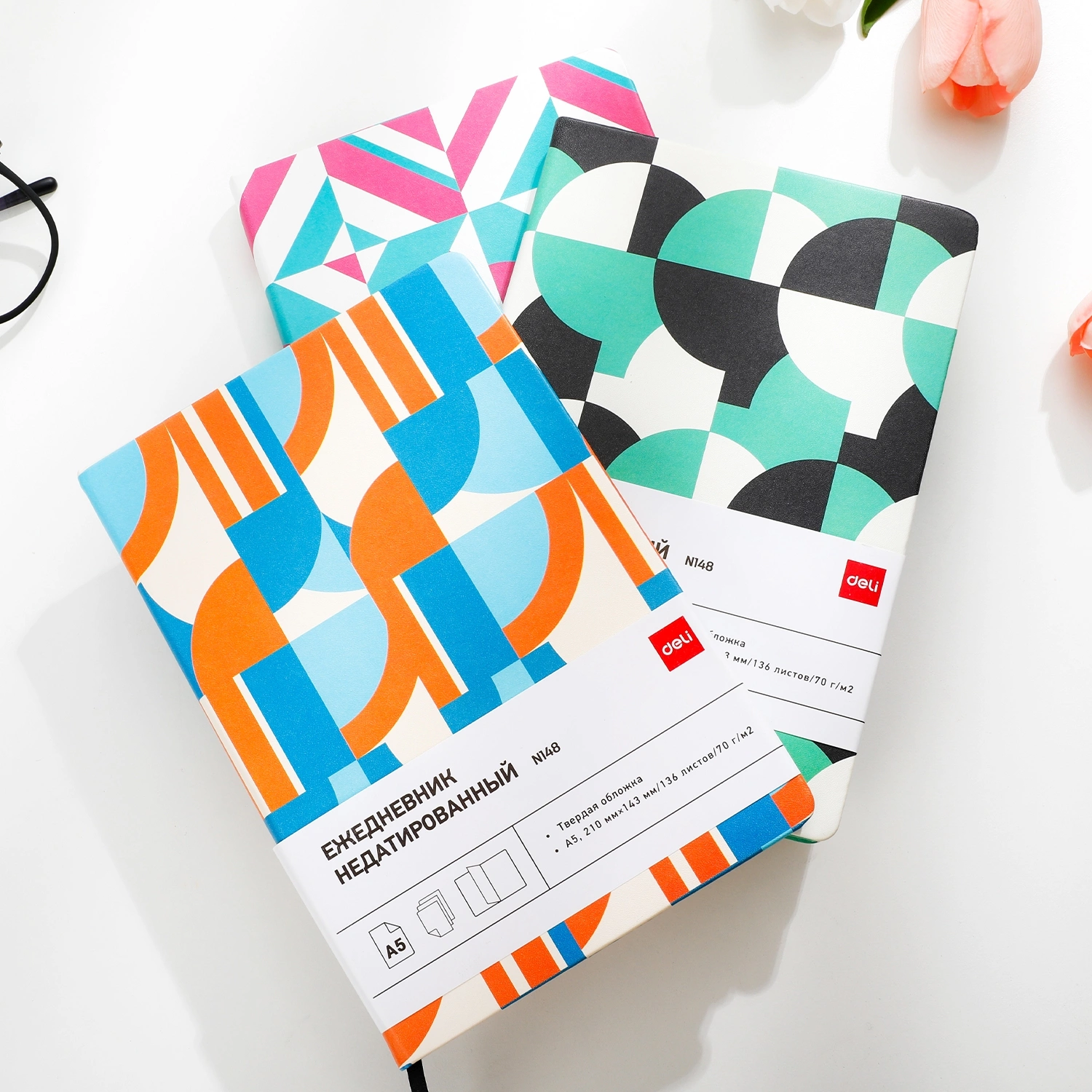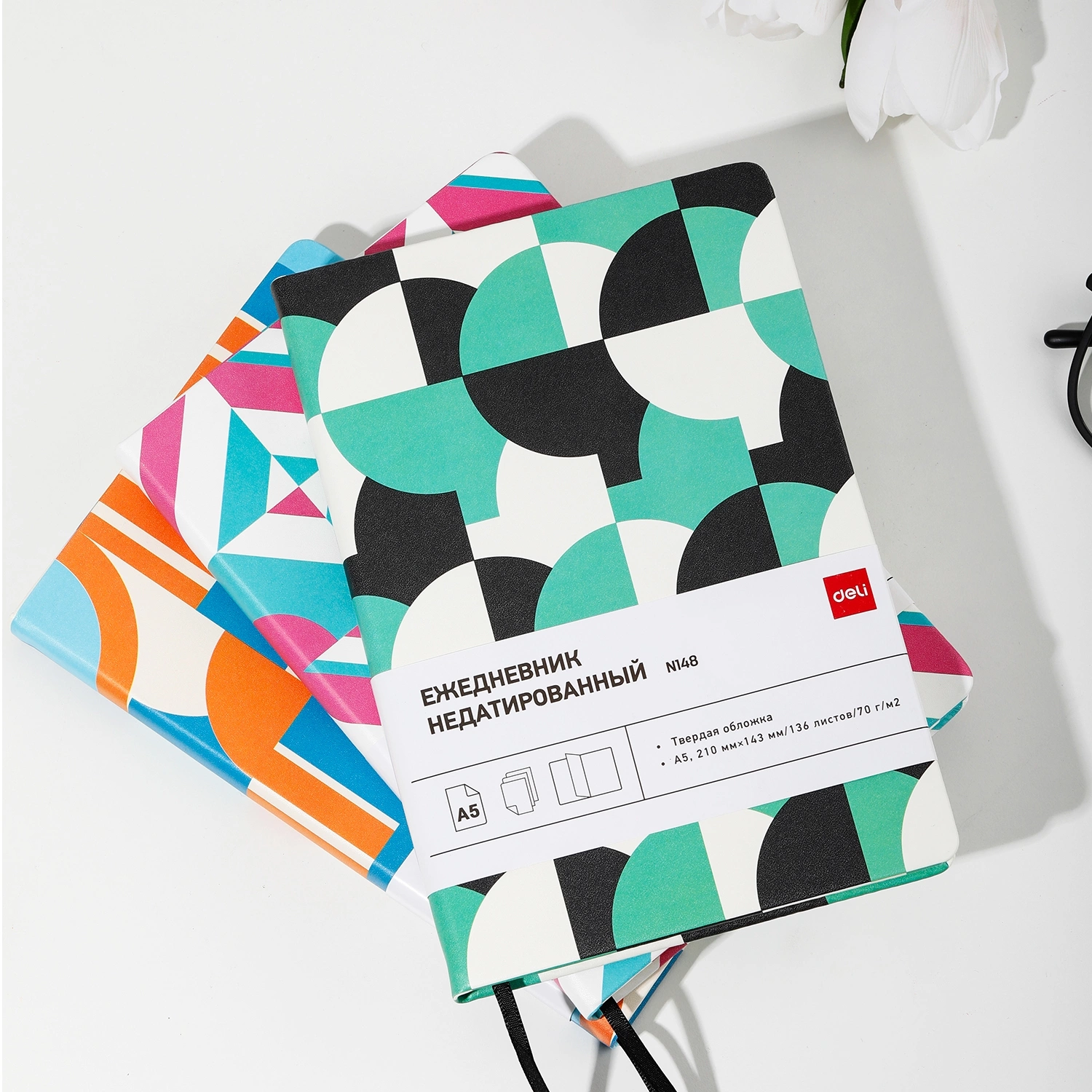 Недатированный ежедневник Deli "Coloring", A5, 136 листов, 70 г/м2, твердая обложка, цвет черно-зеленый