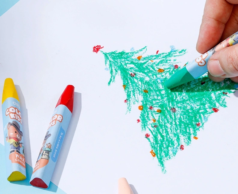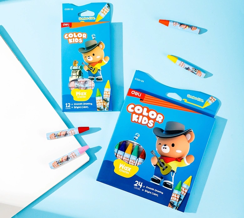 Восковые мелки Deli EC221-12, диаметр 11 мм, длина 75 мм, увеличенная толщина, трехгранные, 12 цветов, картонная коробка
