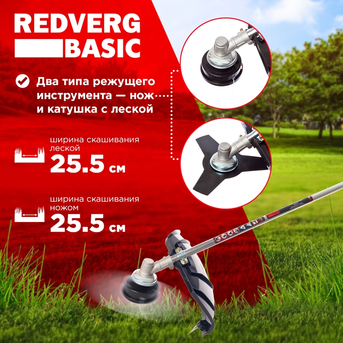 Триммер бензиновый RedVerg Basic GB33C 1400Вт 1.8л.с. неразбор.штан. реж.эл.:леска/нож
