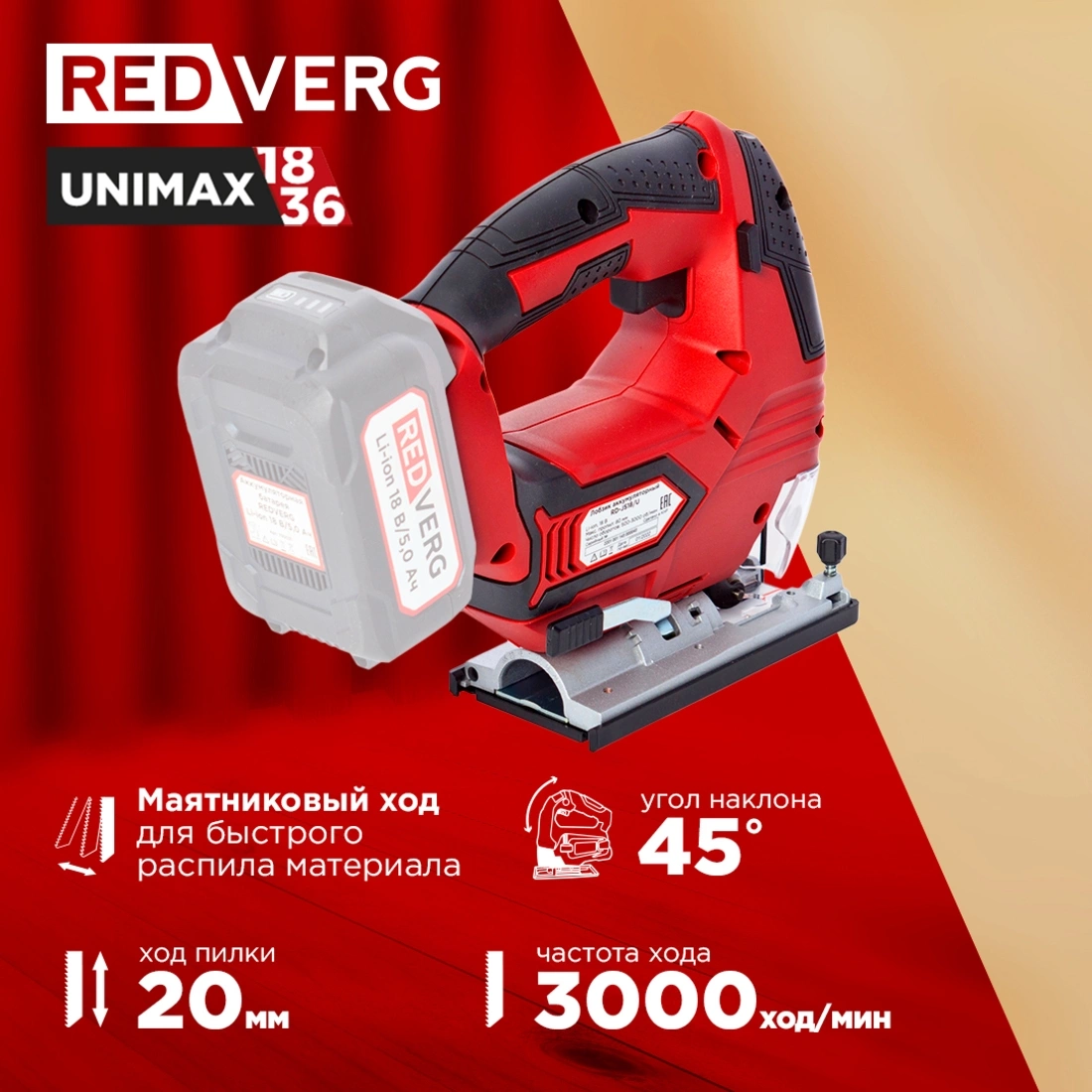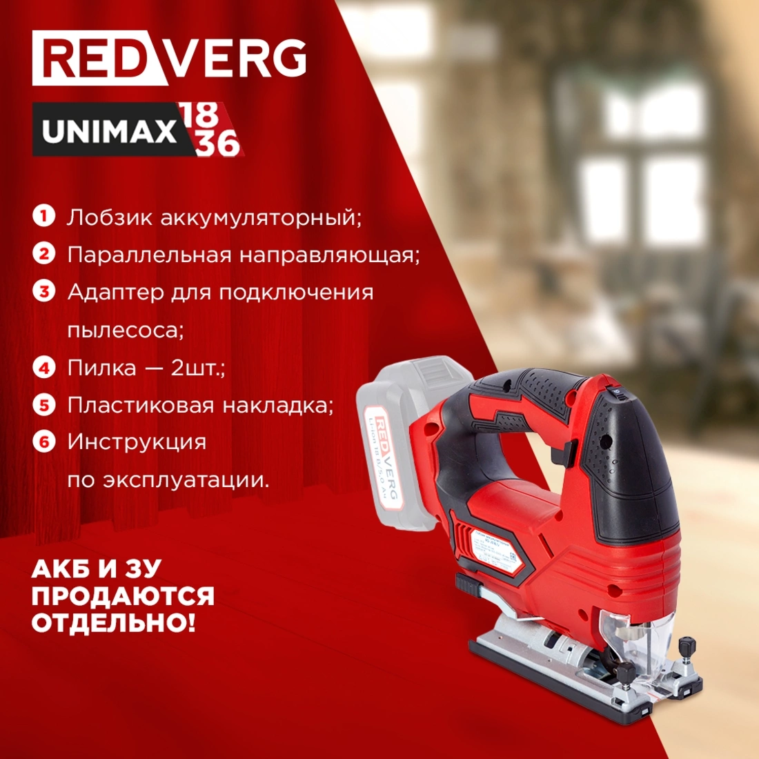Лобзик RedVerg RD-JS18/U +2пил. 3000ходов/мин от аккумулятора