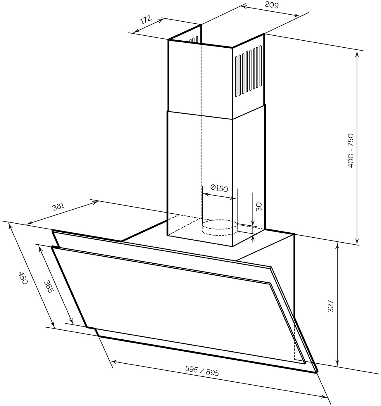 Вытяжка каминная Lex Furia 900 черный управление: сенсорное (1 мотор)