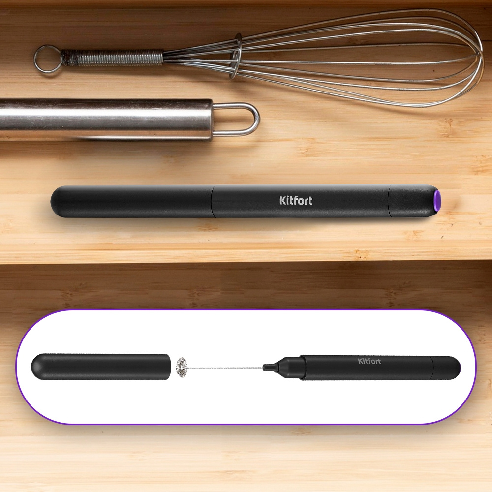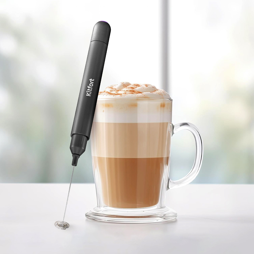 Венчик для взбивания Kitfort КТ-7145 прекрасно взобьёт молочную пену для капучино, кофе латте и других напитков, а также без труда перемешает горячий шоколад или какао. Приготовление займёт не более 30 секунд.