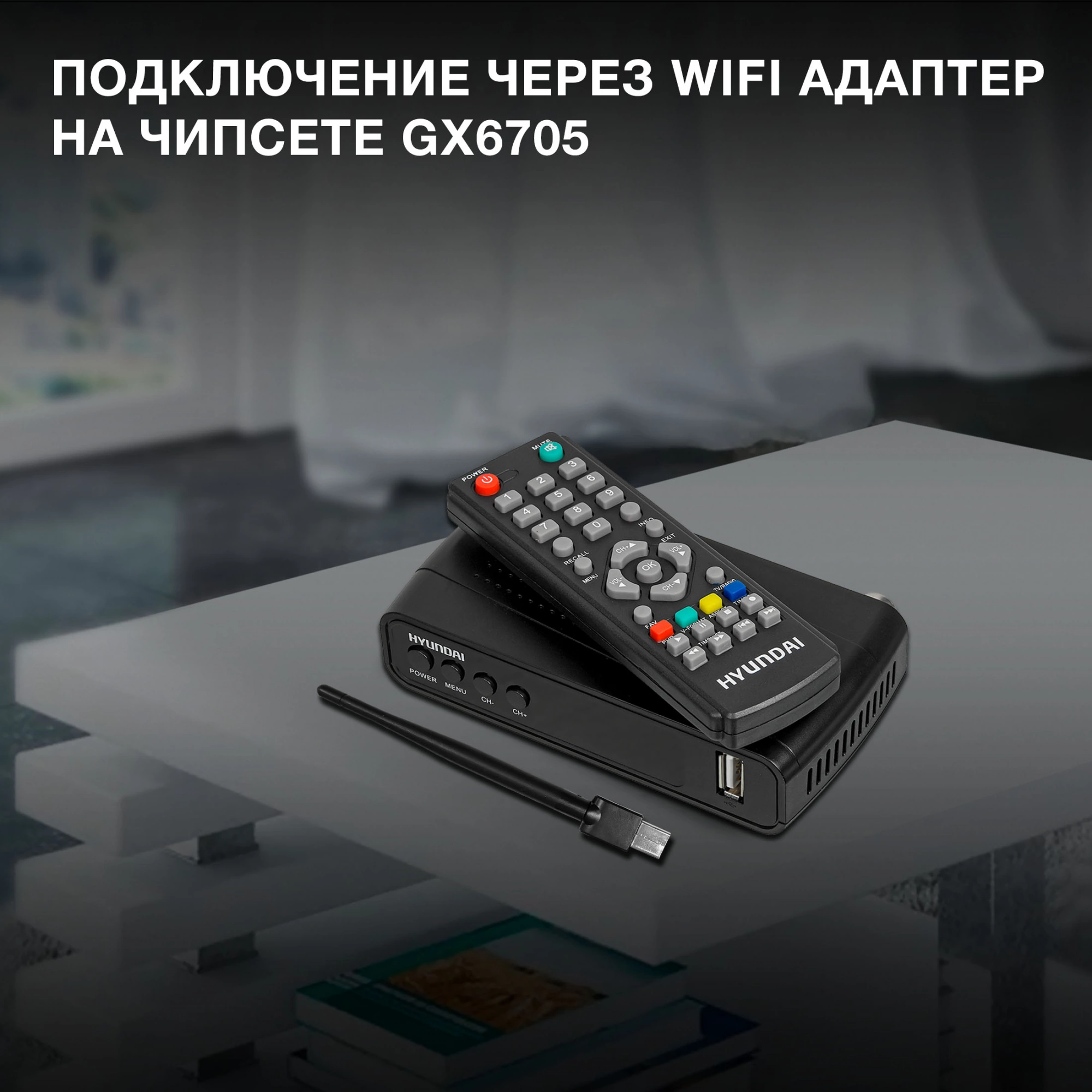 Ресивер DVB-T2 Hyundai H-DVB520 + WiFi-адаптер черный