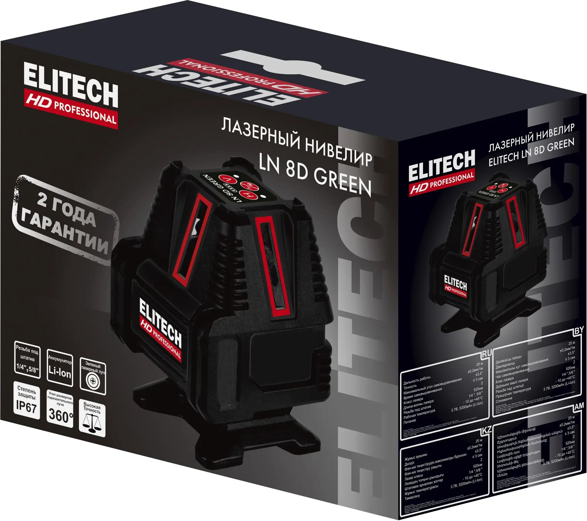 Нивелир лазерн. Elitech LN 8D GREEN 2кл.лаз. 520нм цв.луч. зеленый 5луч. (204735)