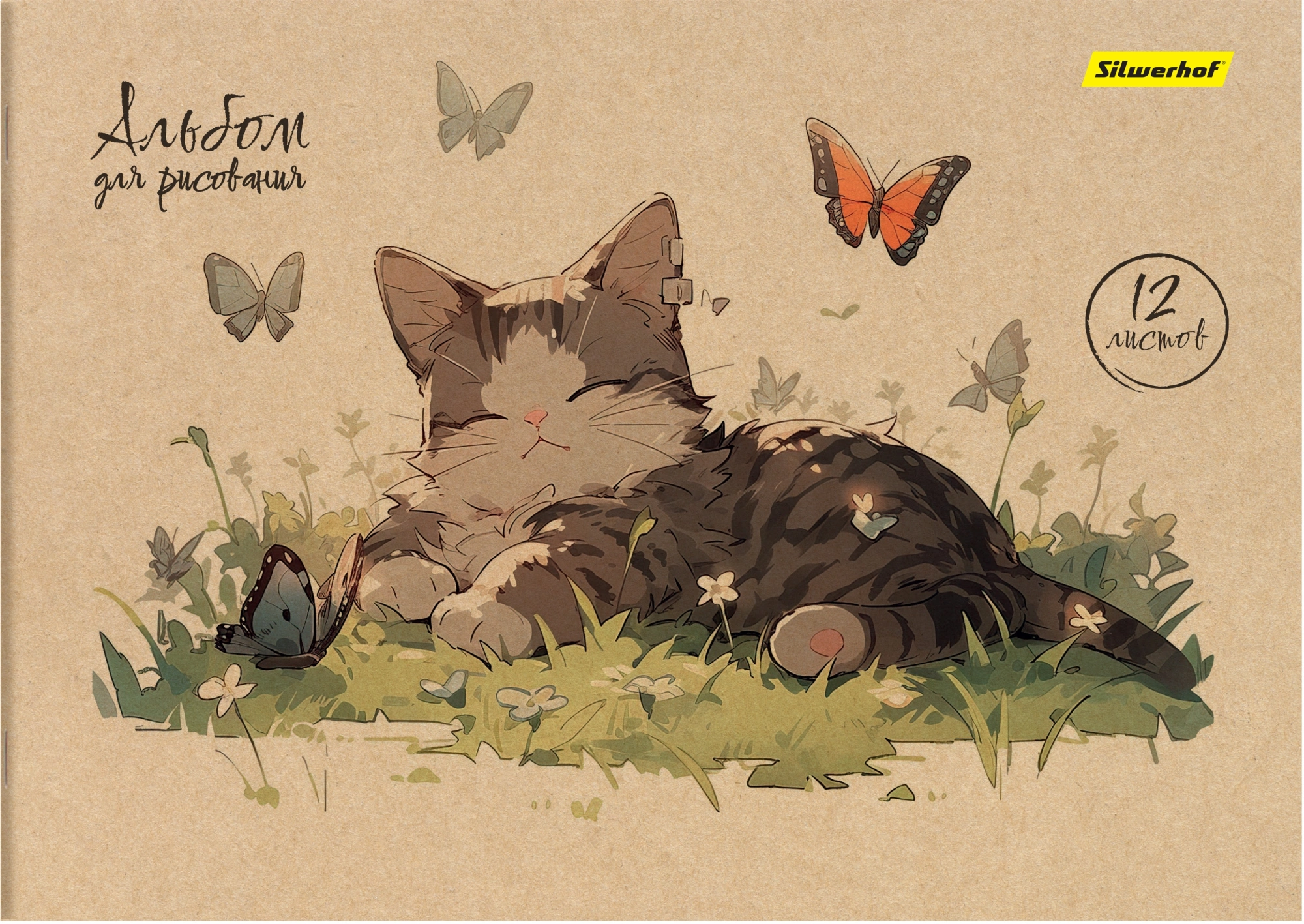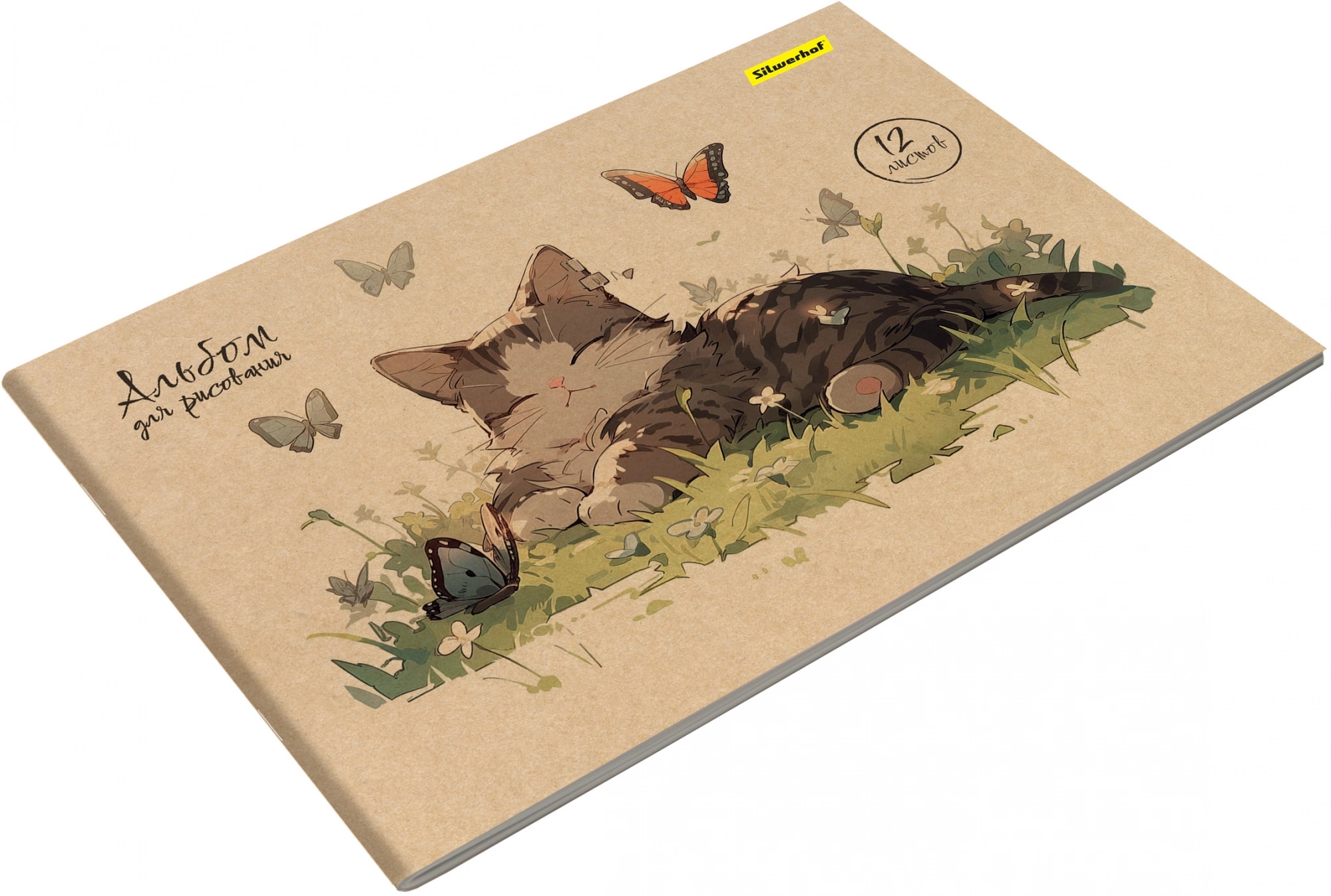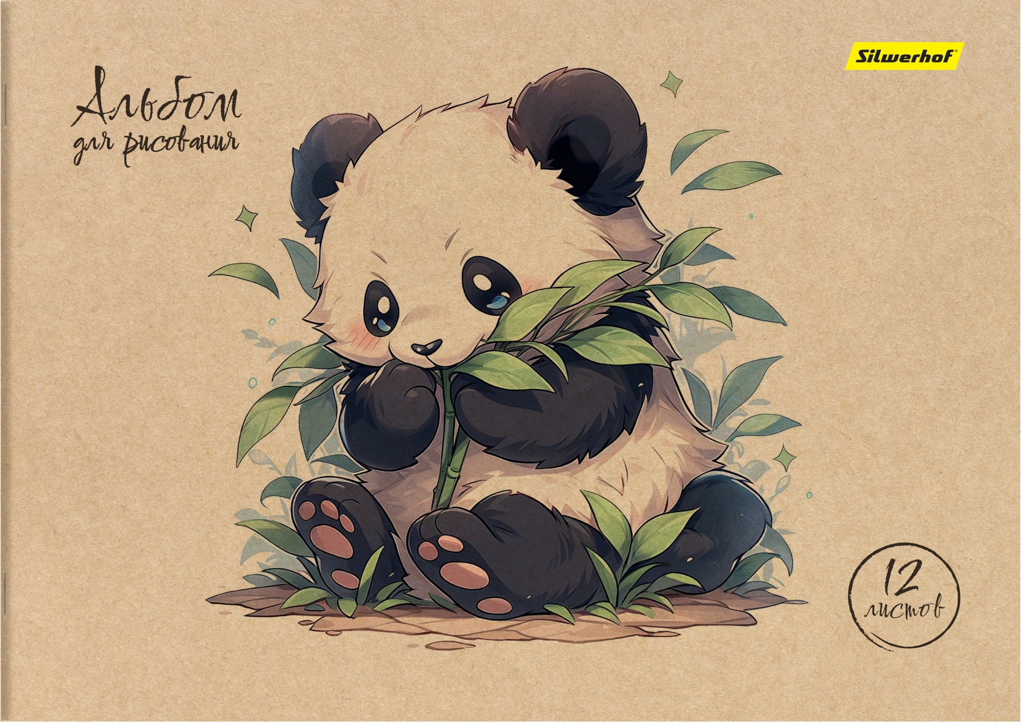 Альбом для рисования Silwerhof 12л. A4 Акварель на крафте 4диз. картон скрепка (упак.:4шт)