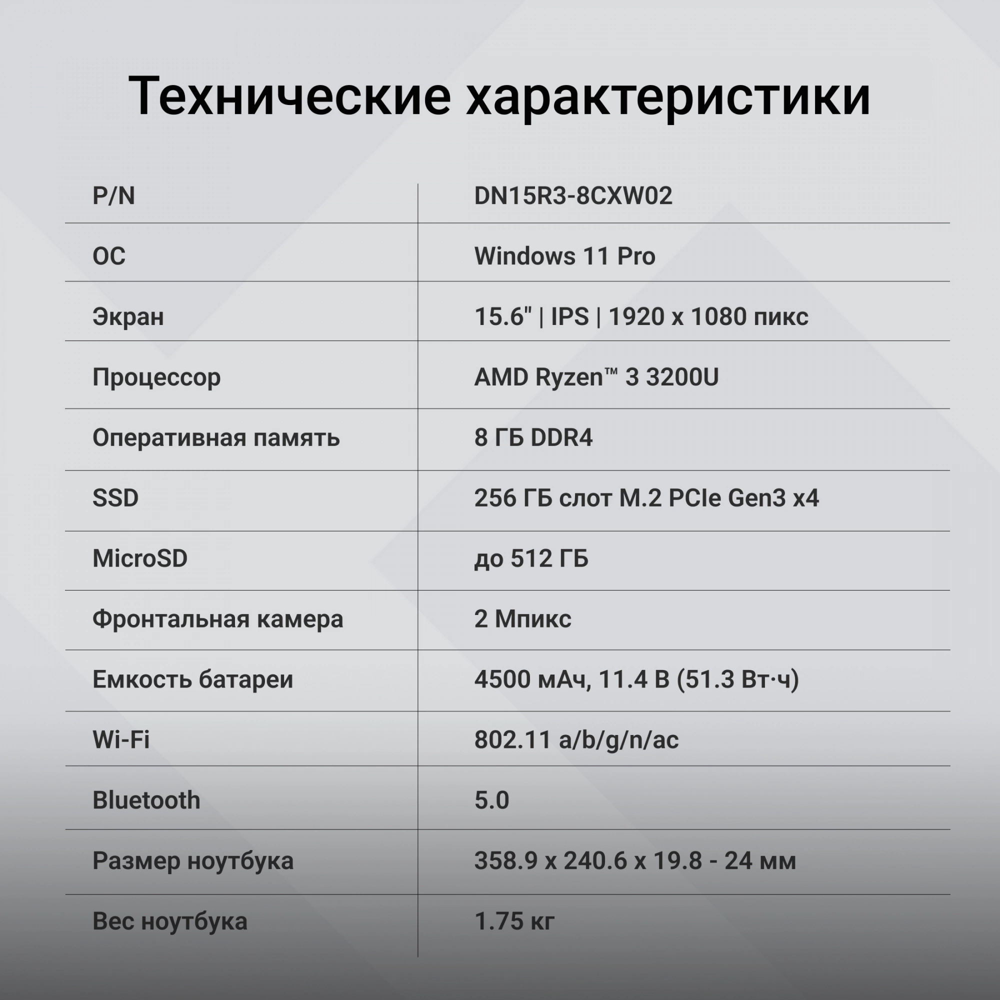 Ноутбук Digma EVE A5820 Ryzen 3 3200U 8Gb SSD256Gb AMD Radeon 15.6" IPS FHD (1920x1080) Windows 11 Professional black WiFi BT Cam 4500mAh (DN15R3-8CXW02)