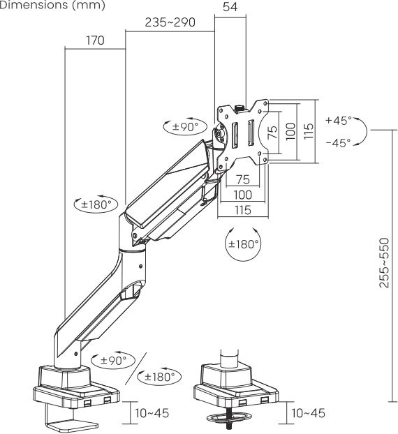 - ОсобенностиНастольный кронштейн для монитора с системой газ-лифт.
