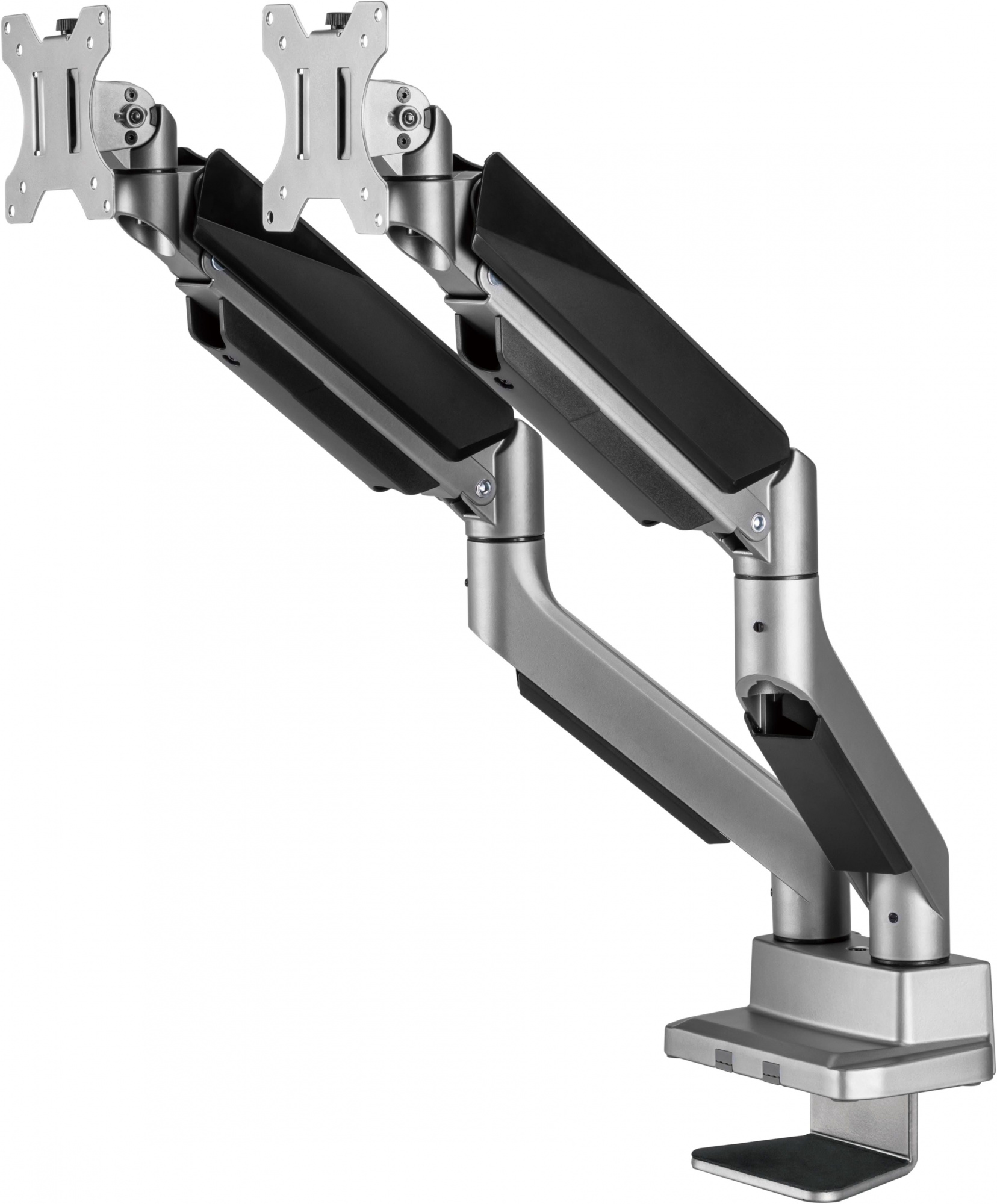 - ОсобенностиНастольный кронштейн для монитора с системой газ-лифт. Конструкция со свободным наклоном позволит легко регулировать наклон вперед или назад для лучшего обзора и уменьшения бликов.