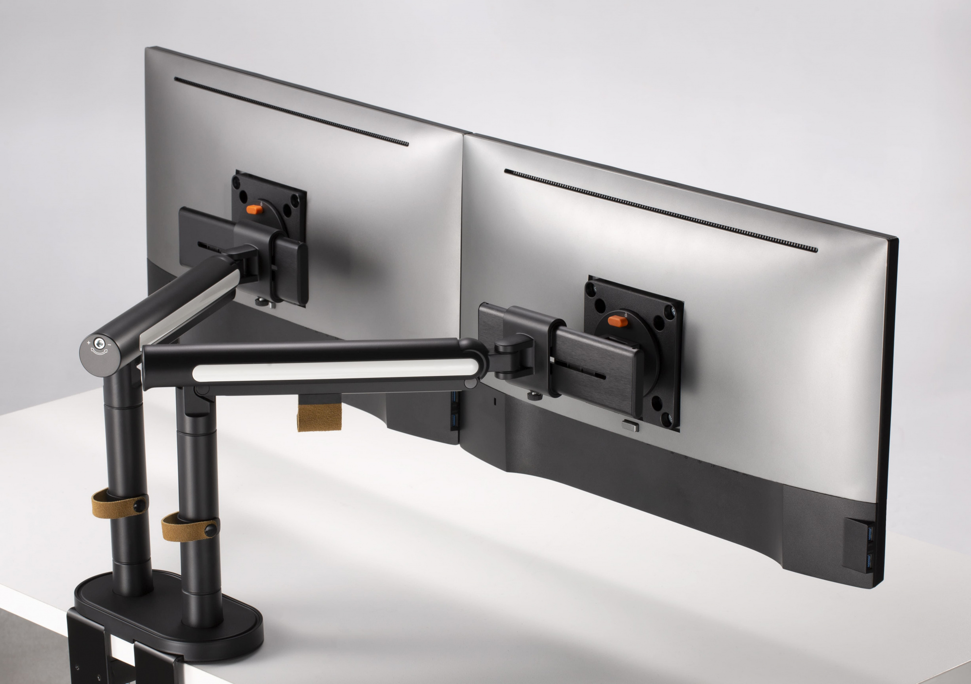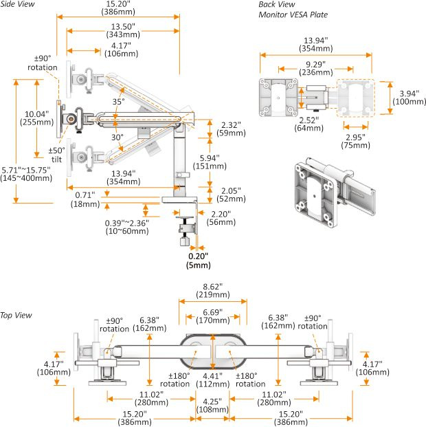 - ОсобенностиНастольный кронштейн для двух мониторов с системой слайдер.