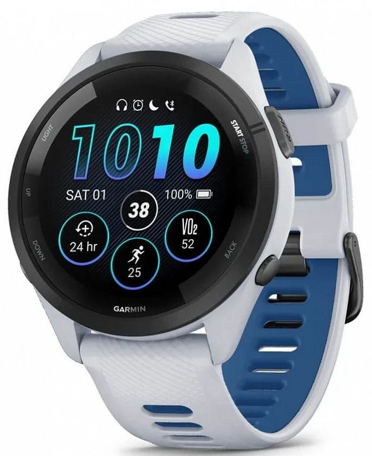 Смарт-часы Garmin Forerunner 265 33мм 1.3" AMOLED корп.черный/белый силикон рем.белый (010-02810-11)