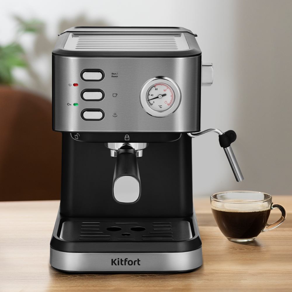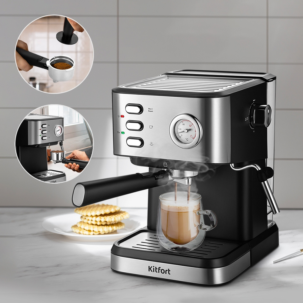 Кофеварка рожковая Kitfort КТ-7293 1050Вт черный/серебристый