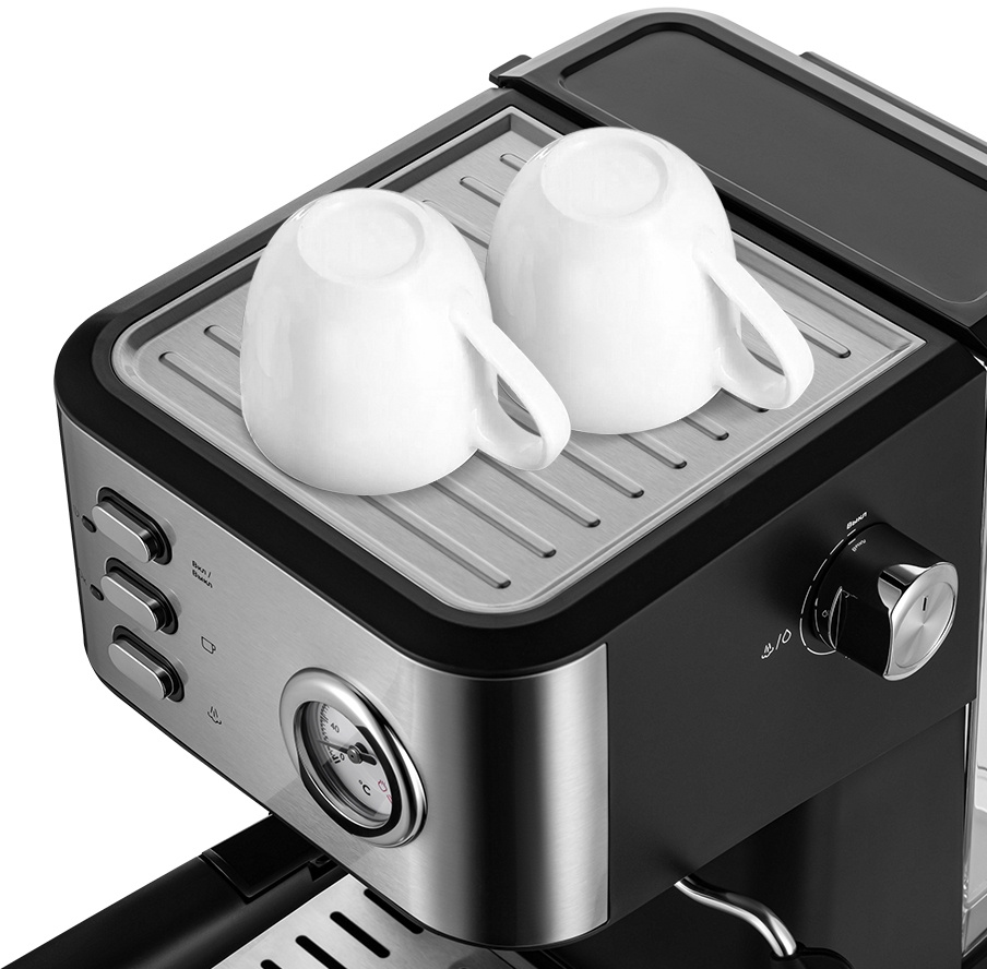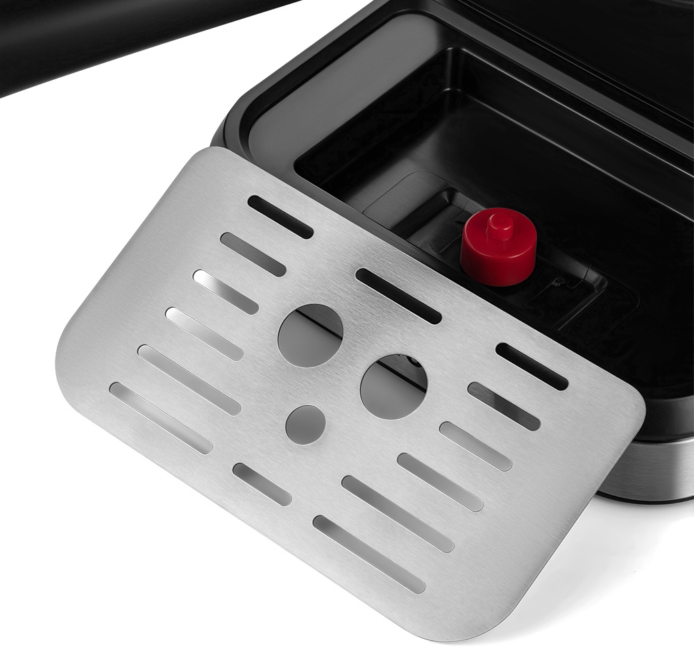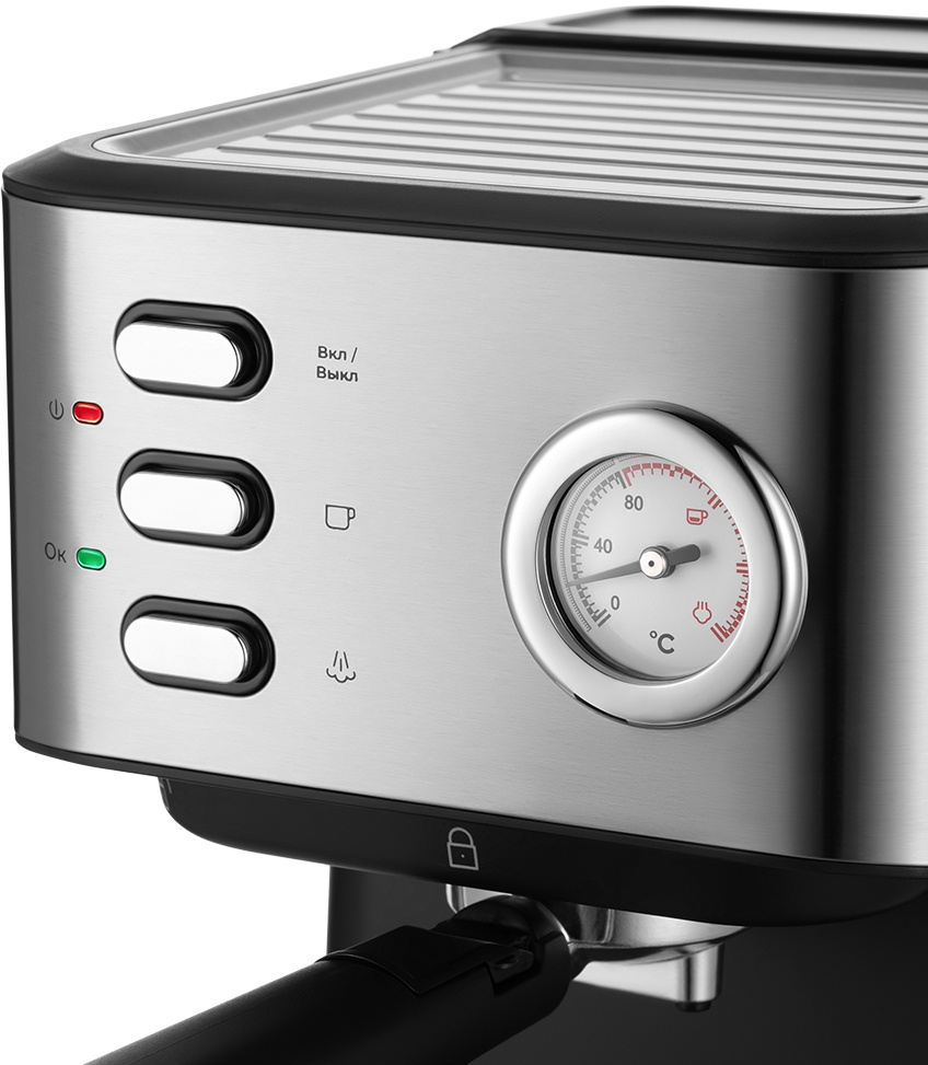- Конструктивные особенностикапучинатор, манометр, отсек для шнура, панель для подогрева чашек, съемный дренажный отсек для капель, съемный поддон для капель, съемный резервуар для воды, темпер