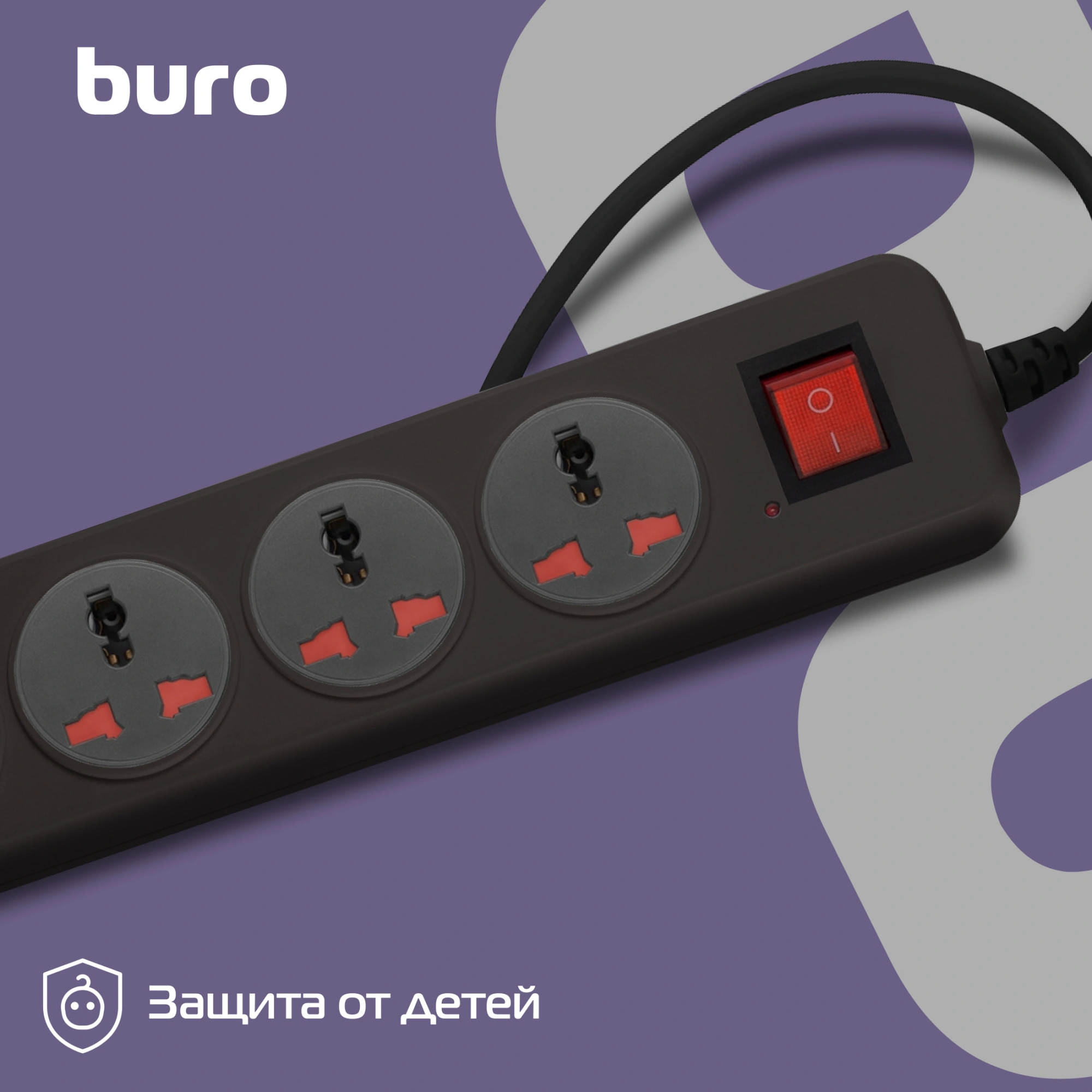 Сетевой фильтр Buro 500UNH-1.8-BG 1.8м (5 розеток) черный/серый (коробка)