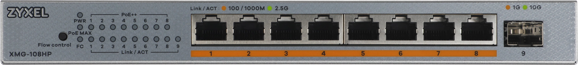 Коммутатор Zyxel XMG-108HP-EU0101F (L2) 8x2.5Гбит/с 1SFP+ 8PoE++ 100W неуправляемый