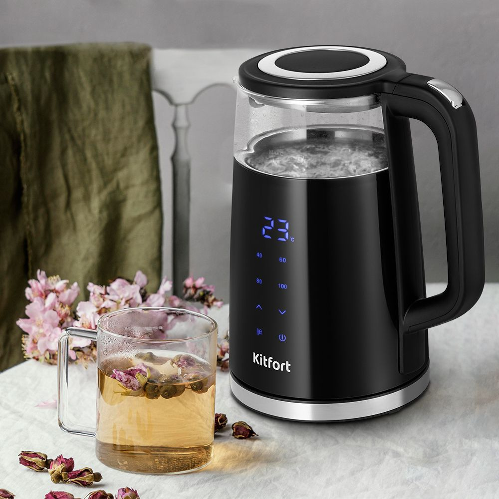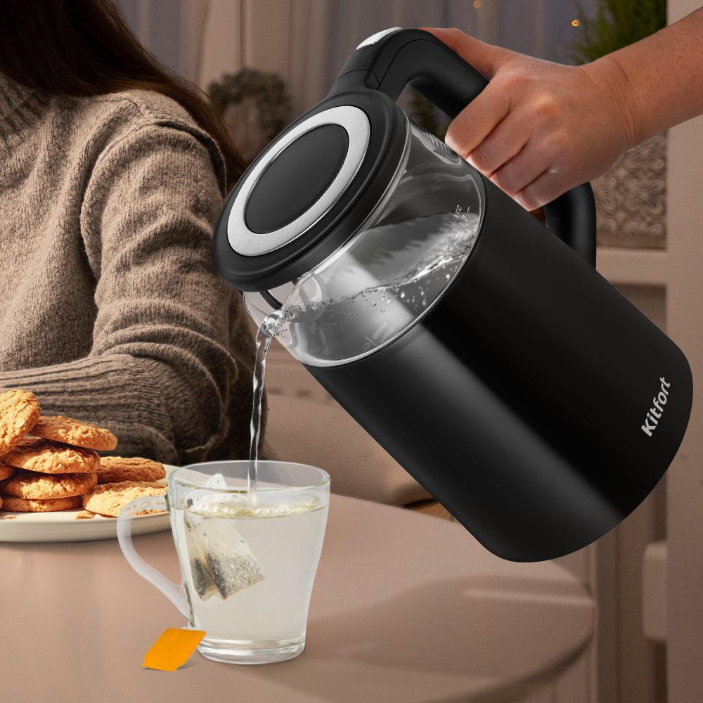 Электрический чайник Kitfort КТ-6611 может не только вскипятить воду, но и нагреть её до температуры от 40 до 95°C. Ёмкость чайника 1,7 литров: этого хватит, чтобы приготовить горячие напитки на большую семью.