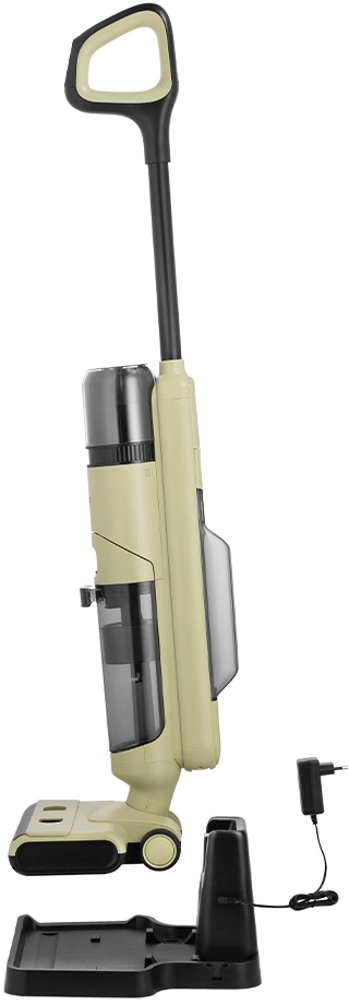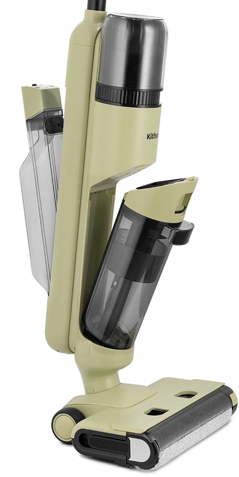 Беспроводной вертикальный моющий пылесос КТ-5238 с функцией самоочистки удобен при проведении влажной уборки гладких напольных покрытий. Он собирает пролитые жидкости и убирает влажный мусор, что нельзя сделать обычным пылесосом.