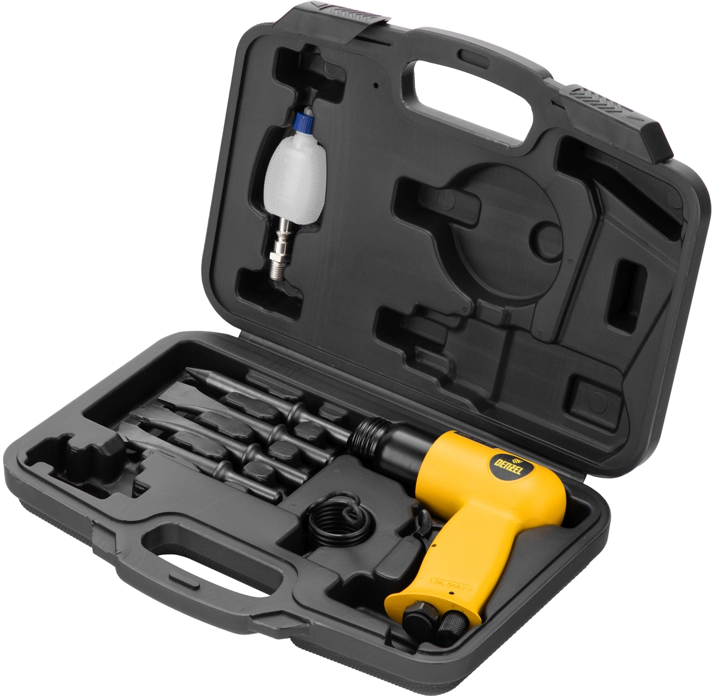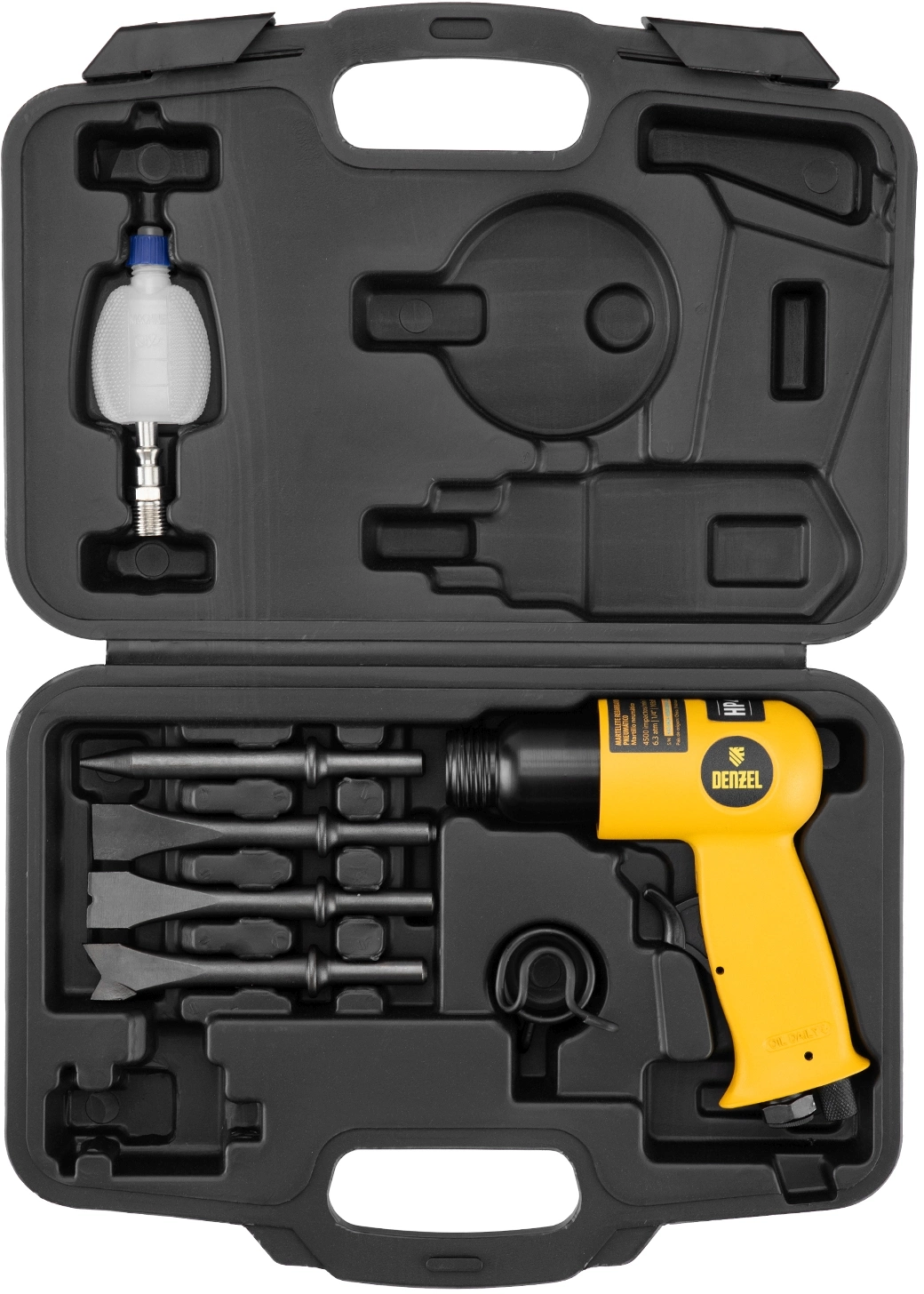 - КомплектацияМолоток, штуцер, кейс, зубило - 4 шт., масленка, пружина-держатель.